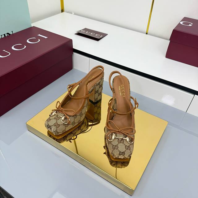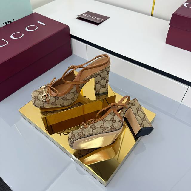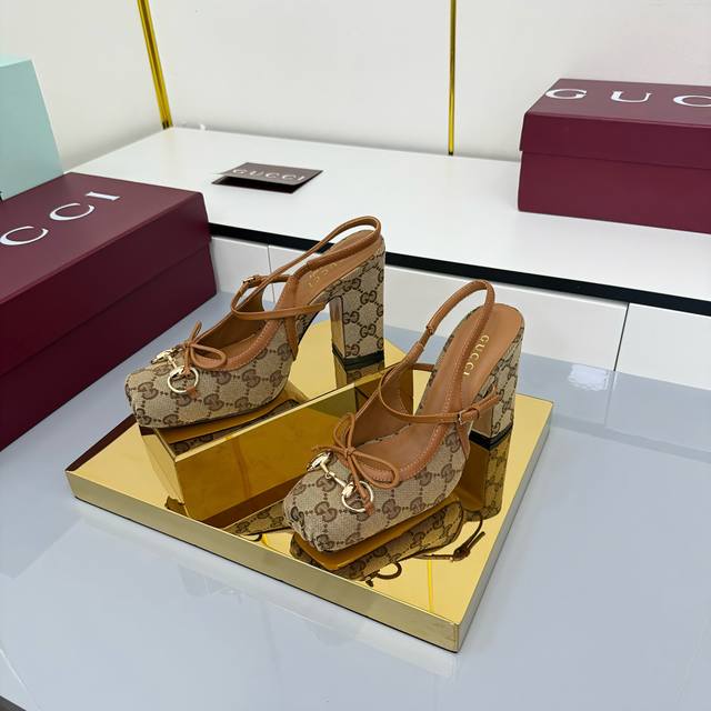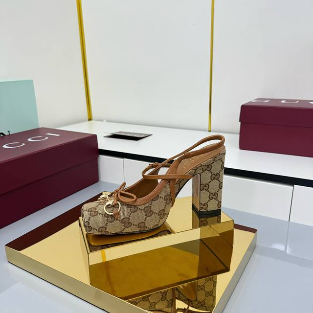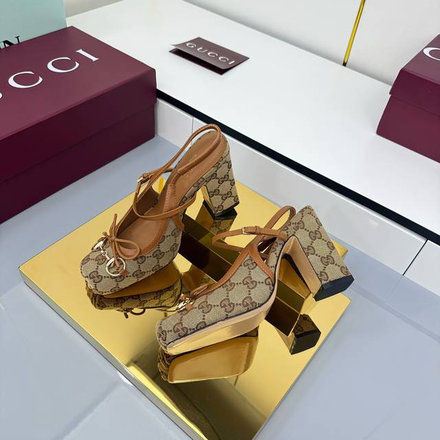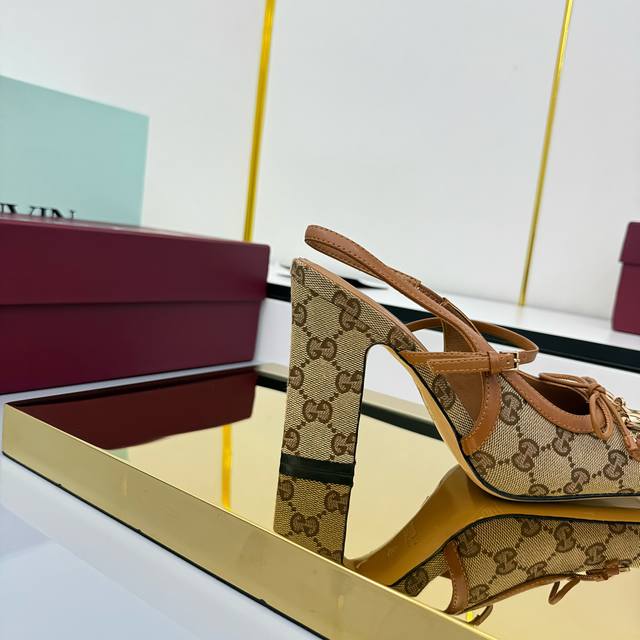 Fall/Winter 2025 Collection. This horsebit back-lacing pump features a square toe box and elegant bow details, paying homage to traditional ballet flats. Crafted from leather and adorned with light gold hardware, the "Sacchetto" construction ensures exceptional comfort. Gucci Encore Red Leather, Light Gold Hardware, Leather Lining, Horsebit, Leather Bow Details, Leather Sole, "Sacchetto" Construction, Lace -up Design with Adjustable Buckle, Heel Height: 9.5cm, Sizes 35-42