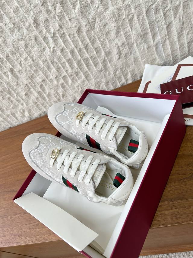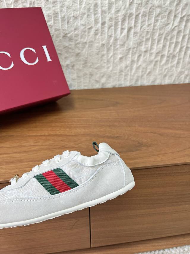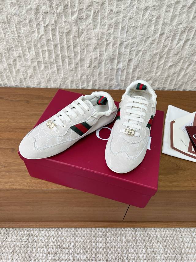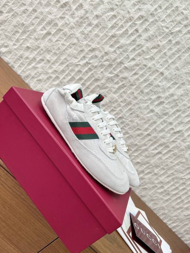G100 Gucci 26Ss Spring/Summer New Flat German Training Shoes DDD Lightweight design reinterprets sporty style. DDD The clean silhouette adds to the natural feel, showcasing exquisite quality with every movement. DDD Webbing details run like a continuous ribbon throughout the design, while side stitching details add a finishing touch. DDD Upper: Made with original imported suede and breathable mesh DDD Insole: Sheepskin DDD Outsole: Original custom rubber outsole DDD Size: 35-39 40 Made to order, no returns or exchanges DDD