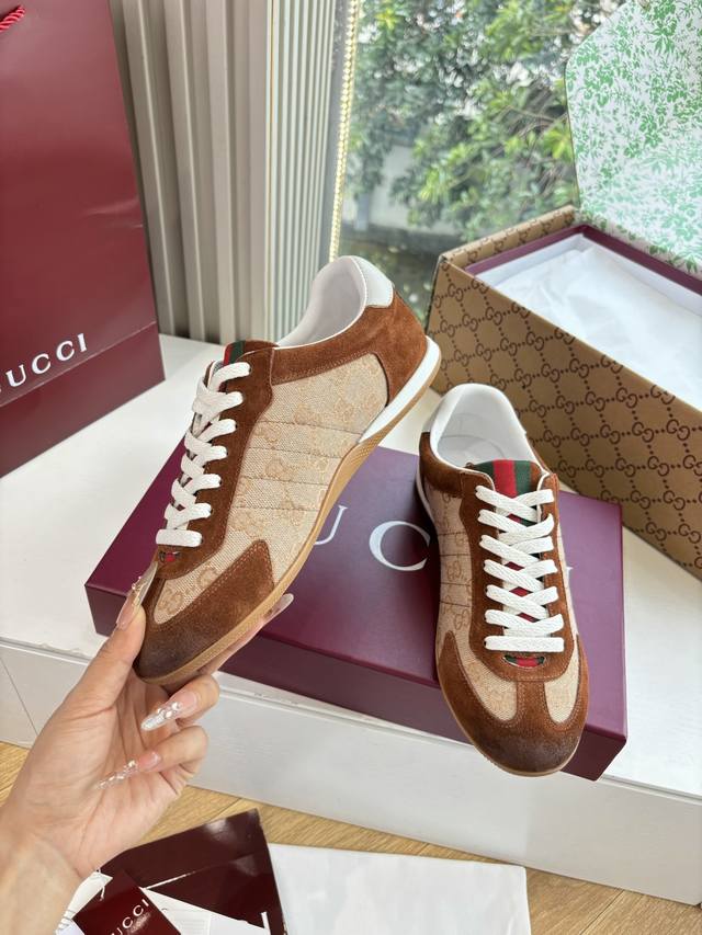 G311 What you see is what you get. Gucci's new Guccishift sneaker couple series has arrived with its own thin-soled shoes. Gucci officially released the new "Guccishift" sneaker series. Inspired by the brand's deep equestrian tradition, the series uses the classic Web stripe as its core, blending diverse materials with modern design to showcase the brand's iconic heritage and innovation. The lightweight and comfortable feel, combined with a minimalist silhouette, creates a sleek and modern look. The rich combination of suede, canvas, and technical fabrics, along with bold color schemes and designs, complement each other, showcasing a more individualistic elegance and vitality. Material: Imported suede; Lining: Leather; Sole: 35-45 (45 custom sizes are non-refundable and non-exchangeable, 39.40; Note: unisex).