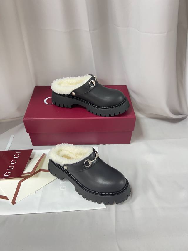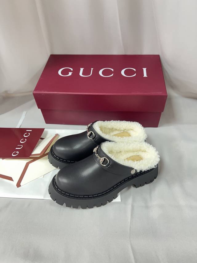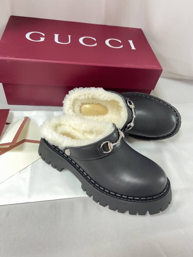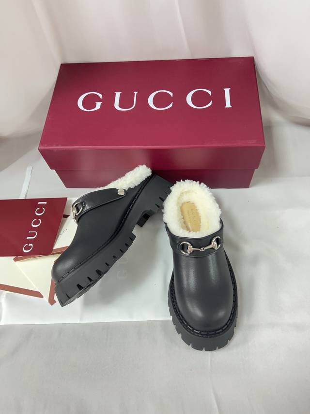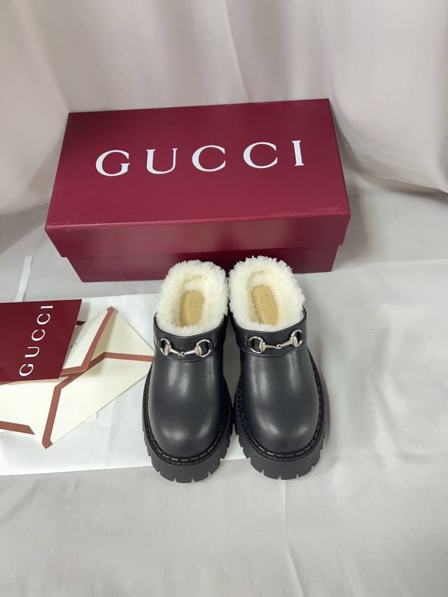 Gucc Autumn/Winter New Arrival - Couple's Horsebit Mules and Lambswool Slippers, 1:1 replica of the original, every detail meticulously crafted, comparable to ZG, top-tier quality! Men's size +20 DDD Material: High-quality cowhide and high-gloss suede DDD Lining: Lambswool, not ordinary wool on the market DDD Outsole: Foamed rubber outsole, 5cm high DDD Sizes: Women's 35-40 41 42 (custom sizes available) Men's 39-44 45 46 (custom sizes available), no returns or exchanges DDD Packaging: Full set of Angolan burgundy shoe box, boutique packaging! DDD