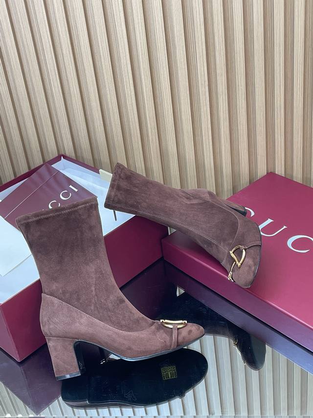 Gucc High-End Boutique 2025 Autumn/Winter New Arrival Big D Half Horsebit Ankle Boots New Round Toe Elastic Boots Exquisite, Elegant, and Fashionable Short Boots DDD Original Quality, Every detail is meticulously crafted, comparable to ZG, unparalleled quality! DDD This elastic boot is crafted with imported silky velvet elastic leather, reinterpreting the classic silhouette with the brand's iconic elements. The gold-toned half horsebit detail adds an elegant touch, paying homage to the brand's enduring heritage through contemporary visuals DDD Material: Original Custom Imported High-Silky Velvet Elastic Leather DDD Hardware: Dongguan Factory Mold Opening Big D Half Horsebit DDD Lining/Insole: High-End Custom Sheepskin Lining DDD Heel Height: 6.5cm DDD Outsole: Italian Genuine Leather Outsole DDD Sizes: 35-42 40 41 42 Made to order, no returns or exchanges DDD Italian Creation DDD Red Full Set High-End Original Packaging DDD