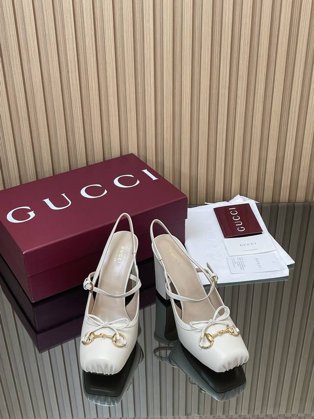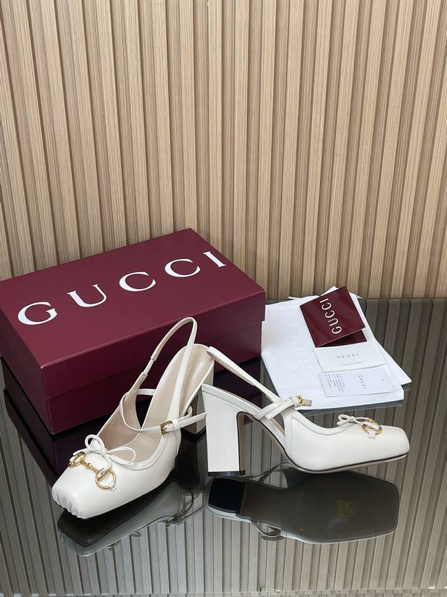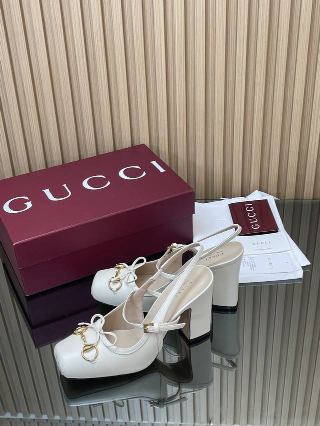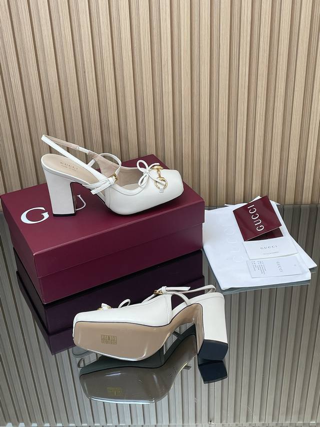 Gucc High-End Boutique 2025 Overseas Early Autumn Gucci Horsebit Series New Arrival High-Heeled Square Toe New Ballet Shoes Horsebit Buckle New Small Square Toe Mules Classic Exquisite Elegant Bow Low Mouth Shoes High-Quality Back Lace-up Open Back Shoes