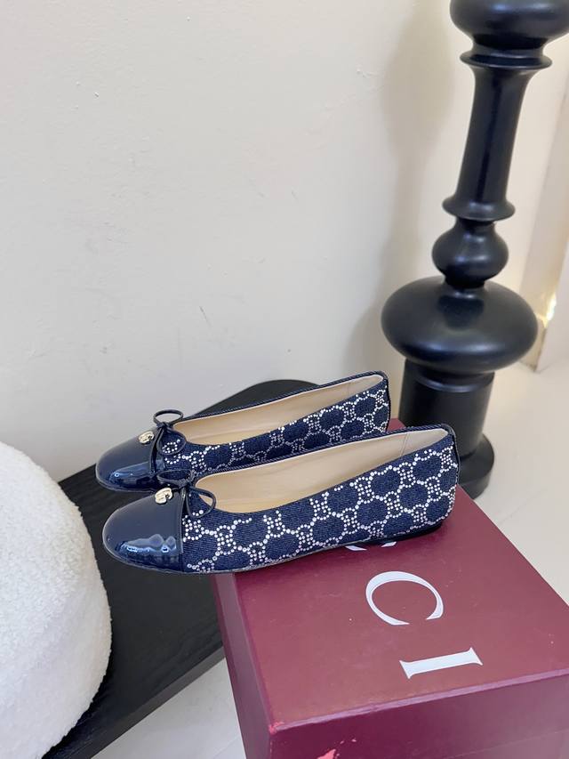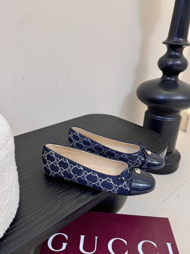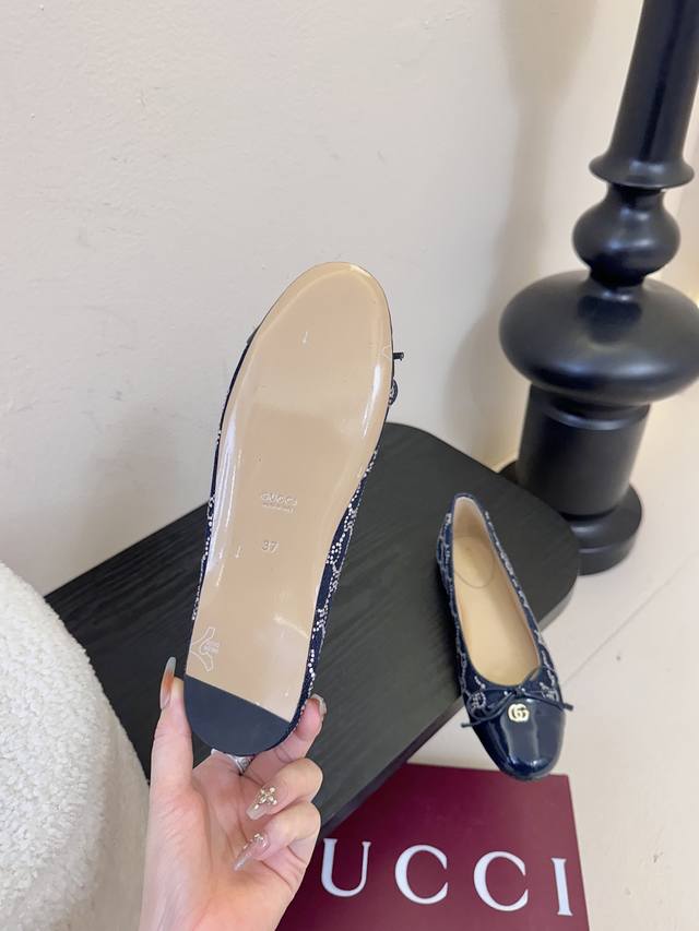 Gucc high-end boutique 2025 overseas early autumn series new arrivals, flat-heeled diamond V-pattern embroidered insoles, ballet flats with bows and small double G buckles. New round-toed single shoes. Classic, exquisite, elegant, playful, and fashionable. High-quality, sweet, preppy-style flat shoes.