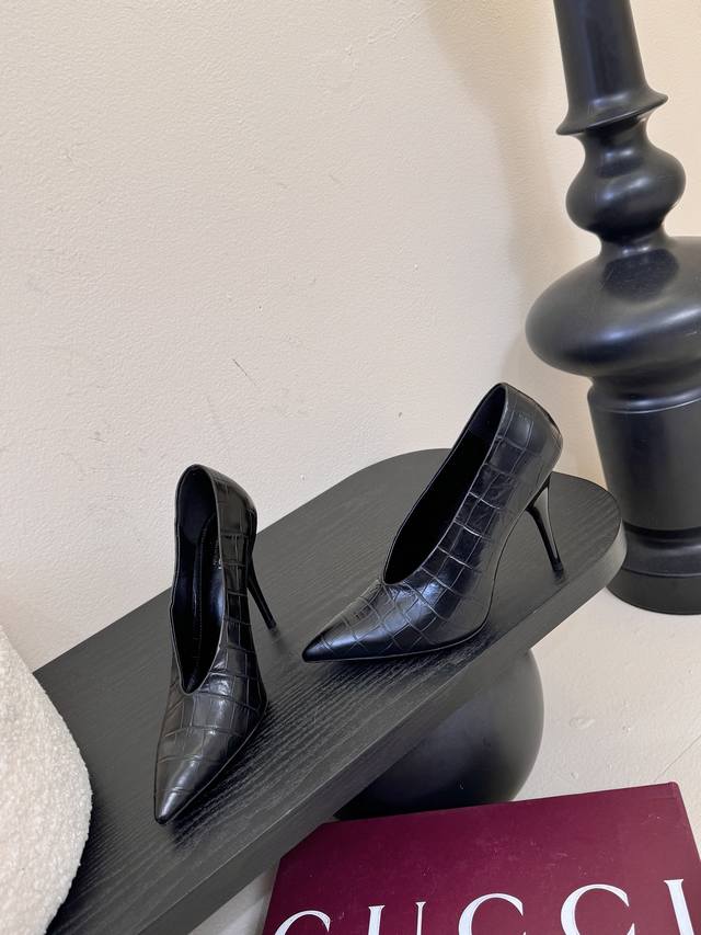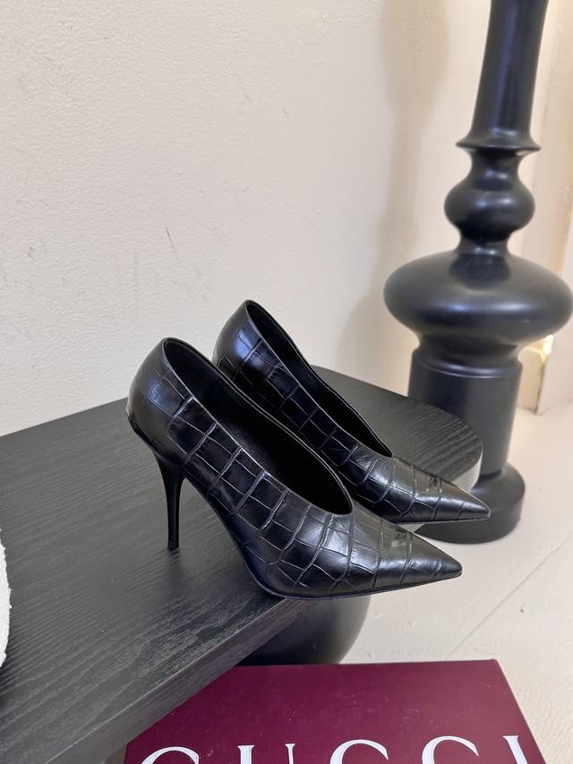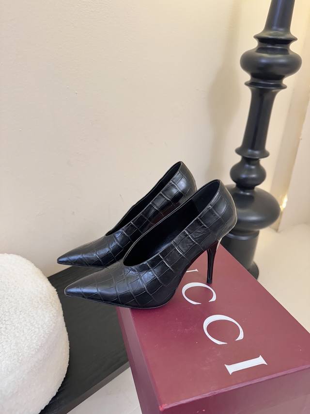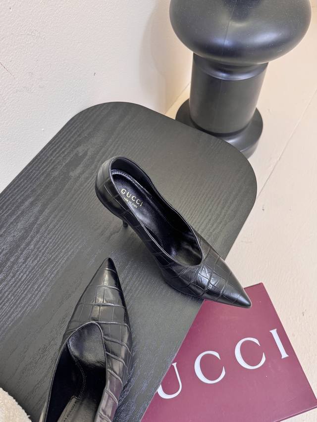 Gucc*25Ss pointed-toe high heels. Minimalist style, retro and sophisticated! Simple and elegant, a style that's sure to last! Imported lambskin upper, water-dyed lambskin lining, Italian imported leather outsole. Sizes: 35-39, 40, 41, 42. Custom made.