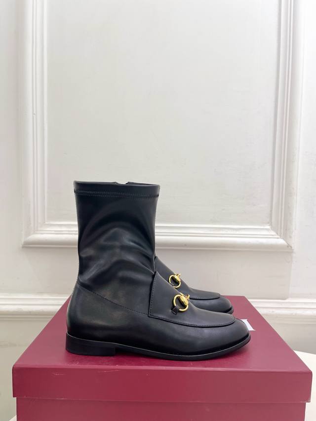 Gucci 2025 Autumn/Winter New Arrival: Classic Horsebit Loafers with Elastic Ankle Boots - The main series is finally here! A highly anticipated item! A fresh design on the classic silhouette! High-end feel! A must-have for bloggers both domestically and internationally, retro yet stylish, easy to wear, and incredibly beautiful! Officially recommended, new colors continuously updated! Upper: Original custom calfskin with elastic leather. Lining: Imported sheepskin. Outsole: Original Italian genuine leather. Heel height: 2cm. Sizes: 35-39, 40, 41, 42 can be customized. Factory price (pp): [Price missing]