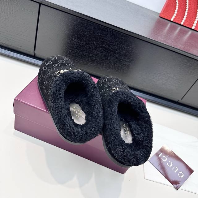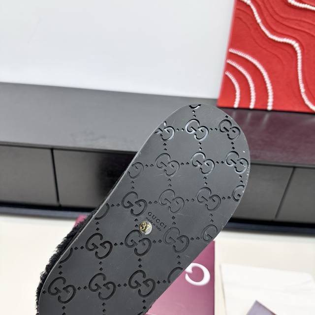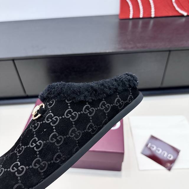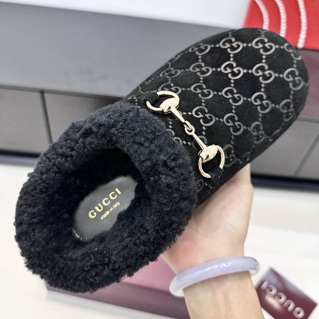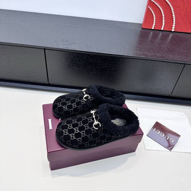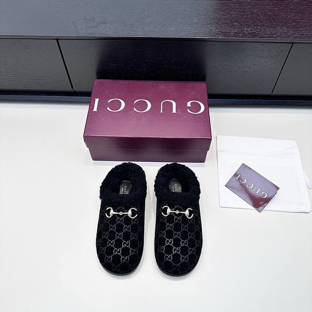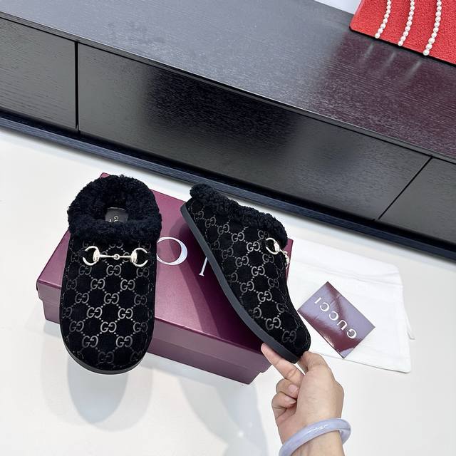 Gucci 2025 Autumn/Winter New Wool Mule Slippers DDD In the lazy days of autumn and winter, these Gucci mule slippers are a perfect blend of sophistication and warmth. The classic GG embossed pattern paired with a vintage horsebit buckle, and the plush collar enveloping soft warmth, make every step feel like stepping into a luxurious comfort trap, seamlessly integrating sophistication into everyday relaxed moments. DDD True to size: 35-42 DDD