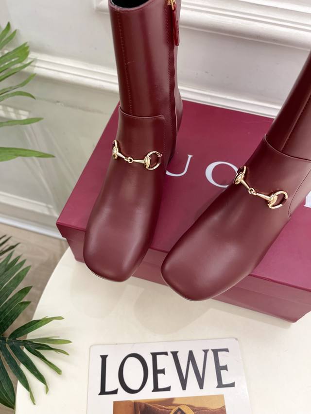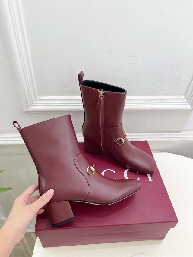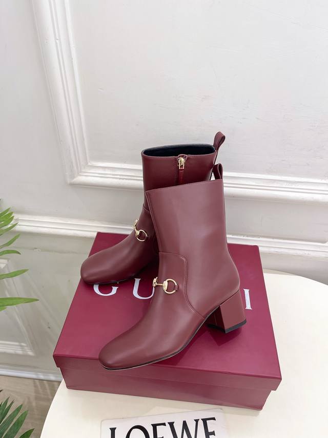 Gucci 2025 Fall/Winter New Arrival: Classic Horsebit Chunky Heel Ankle Boots - The main series is finally here! A highly anticipated item! A fresh design on the classic silhouette! High-end feel! A must-have for bloggers both domestically and internationally, retro yet stylish, easy to wear and incredibly beautiful! Officially recommended, new colors continuously updated! Upper: Original custom calfskin Lining: Imported sheepskin Outsole: Original Italian genuine leather Heel height: 5.5cm Sizes: 35-39, 40, 41, 42 can be customized Factory price (PP):