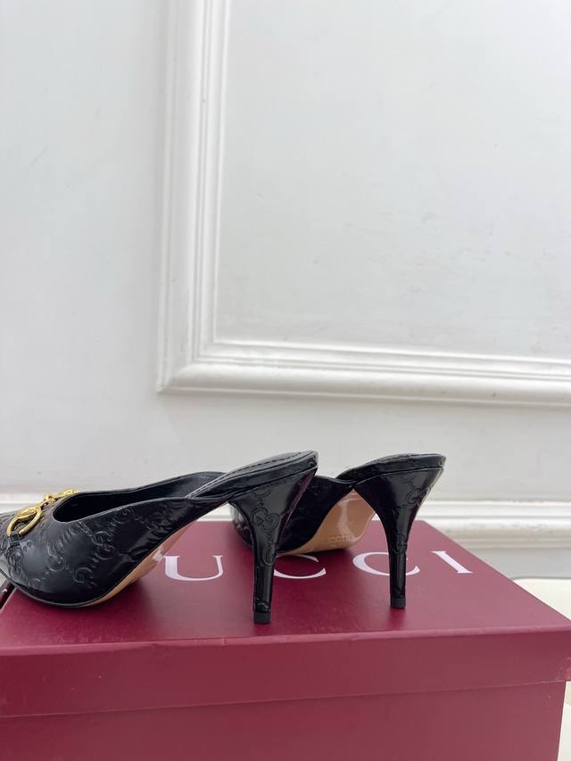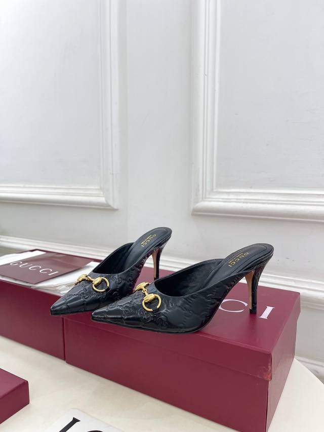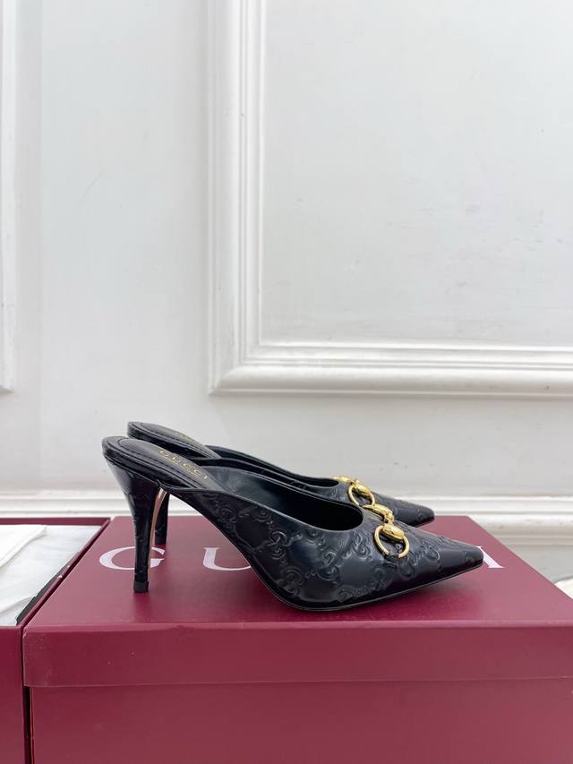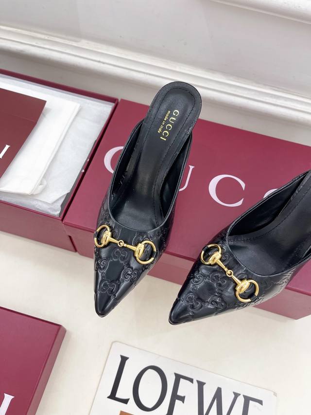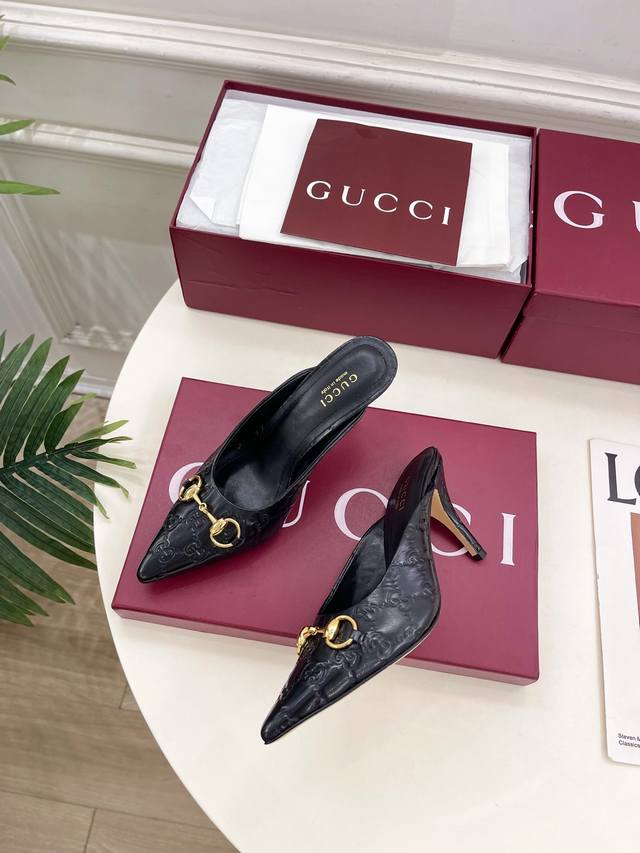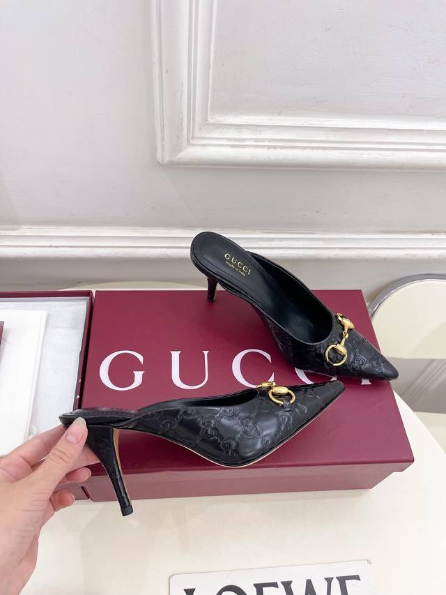 Gucci 2025 Fall/Winter New Arrival: Classic Horsebit Pointed-Toe High-Heeled Mules - The main series is finally here! A highly anticipated item! A fresh design on the classic silhouette! High-end feel! A must-have for bloggers both domestically and internationally, retro yet stylish, easy to wear, and absolutely gorgeous! Officially recommended, new colors continuously updated! Upper: Original Specific Calfskin Velvet Lining: Imported Sheepskin Outsole: Original Imported Genuine Leather Outsole Heel Height: 8.5cm Sizes: 35-39, 40, 41. Custom sizes available. Factory Price (PP): [Price not specified]