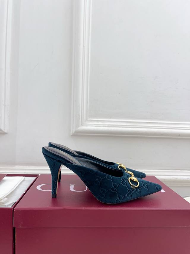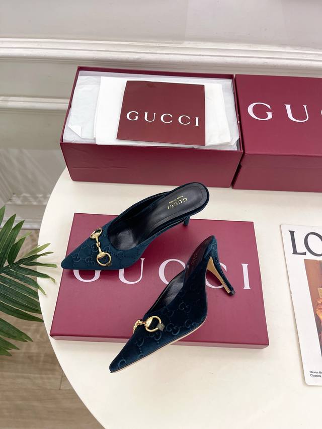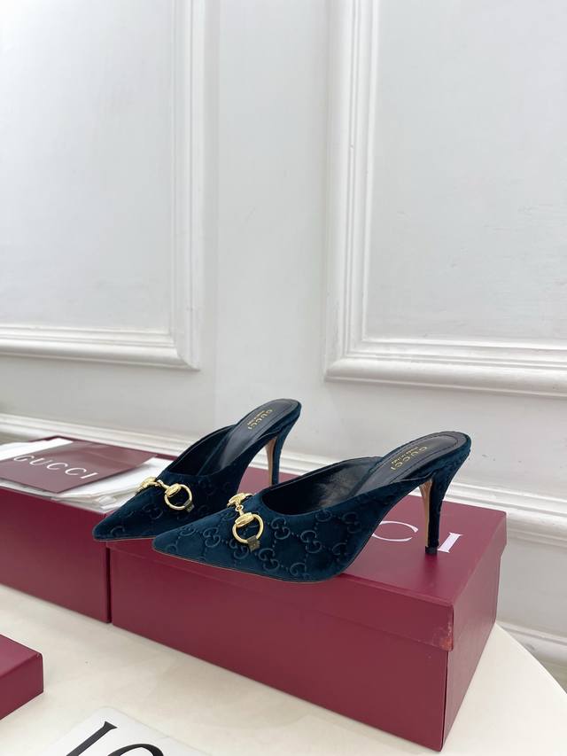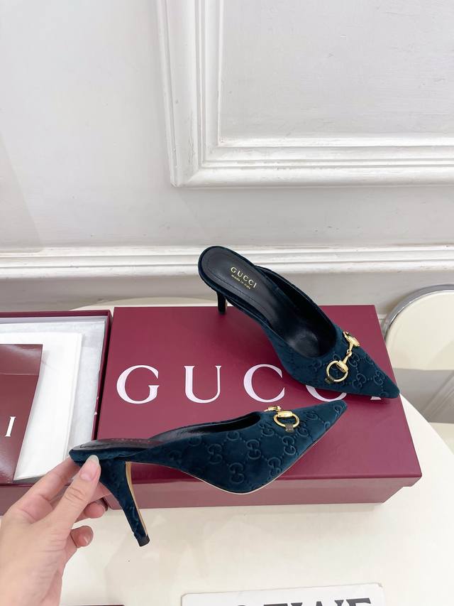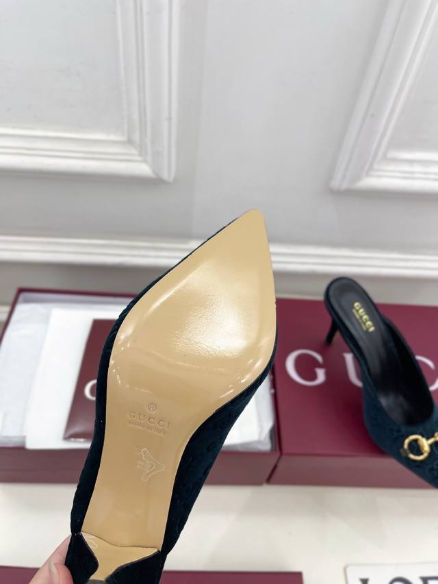 Gucci 2025 Fall/Winter New Arrival: Classic Horsebit Pointed-Toe High-Heeled Mules - The main series is finally here! A highly anticipated item! A fresh design on the classic silhouette! High-end feel! A must-have for bloggers both domestically and internationally, retro yet stylish, easy to wear, and absolutely gorgeous! Officially recommended, new colors continuously updated! Upper: Original Specific Calfskin Velvet Lining: Imported Sheepskin Outsole: Original Imported Genuine Leather Outsole Heel Height: 8.5cm Sizes: 35-39, 40, 41. Custom sizes available. Factory Price: Suede upper 270