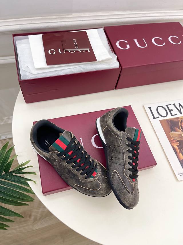 Gucci 2025 Fall/Winter New Runway Collection Gucci Shift Series Webbing Casual Sneakers - The main series is finally here! A highly anticipated item! A classic design with a fresh twist! High-end feel! A must-have for bloggers both domestically and internationally, retro yet stylish, easy to wear and incredibly beautiful! Officially recommended, new colors continuously updated. Upper: Original specific material. Lining: Imported sheepskin. Outsole: Original mold-made custom TPU anti-slip outsole. Heel height: Flat. Sizes: Women's 35-39, 40-41 (custom sizes available); Men's 39-44, 45 (custom sizes available). Factory price: Men's size 10.