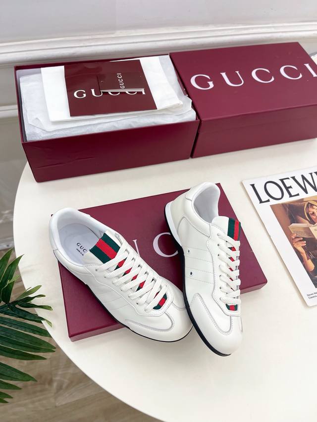 Gucci 2025 Fall/Winter New Runway Collection Gucci Shift Series Webbing Casual Sneakers - The main series is finally here! A highly anticipated item! A classic design with a fresh twist! High-end feel! A must-have for bloggers both domestically and internationally, retro yet stylish, easy to wear and incredibly beautiful! Officially recommended, new colors continuously updated. Upper: Original specific material. Lining: Imported sheepskin. Outsole: Original mold-made custom TPU anti-slip outsole. Heel height: Flat. Sizes: Women's 35-39, 40-41 (custom sizes available); Men's 39-44, 45 (custom sizes available). Factory price: Men's size 10.