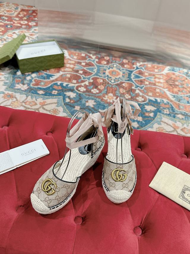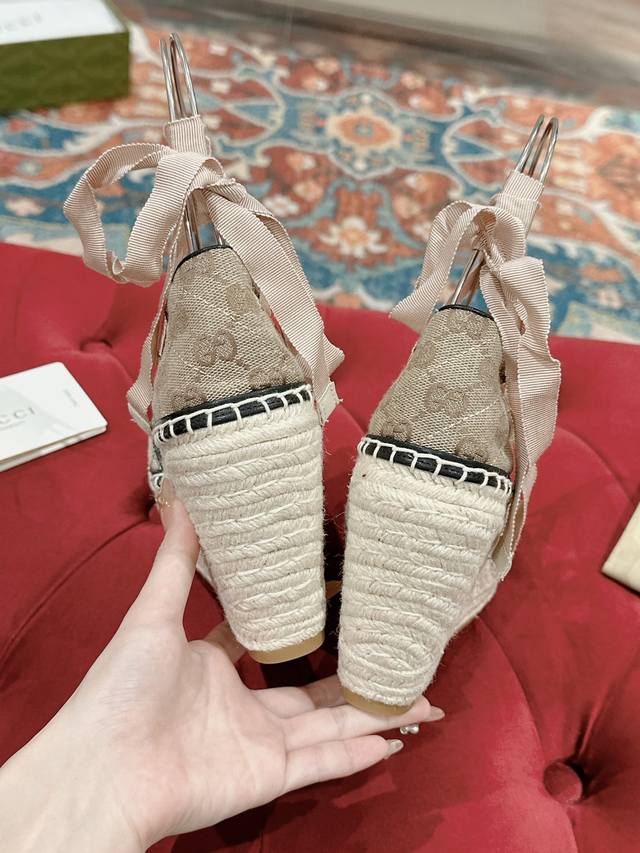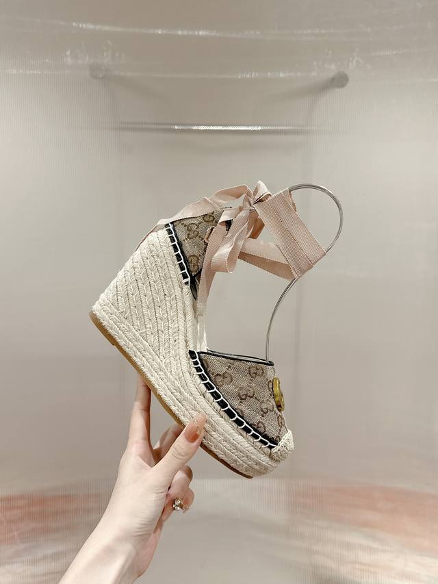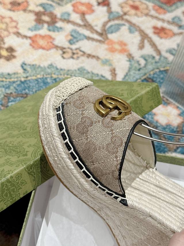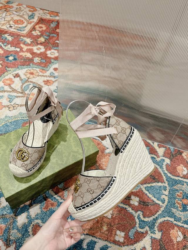 Gucci 22Ss Early Fall Straw Wedge Platform Sandals will add a touch of modern flair to your summer look.