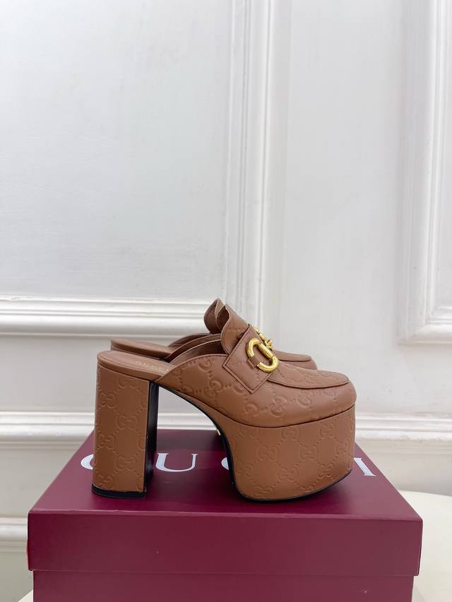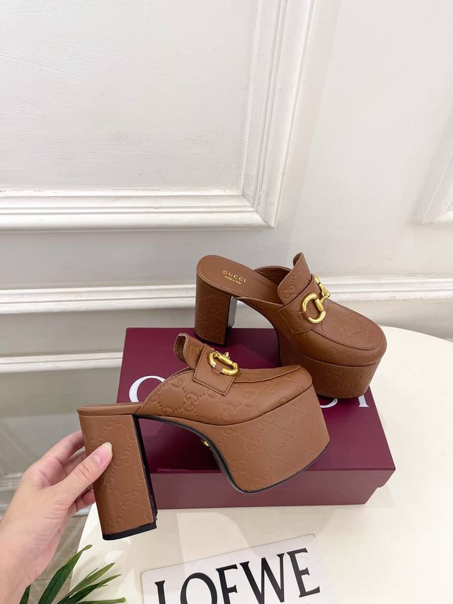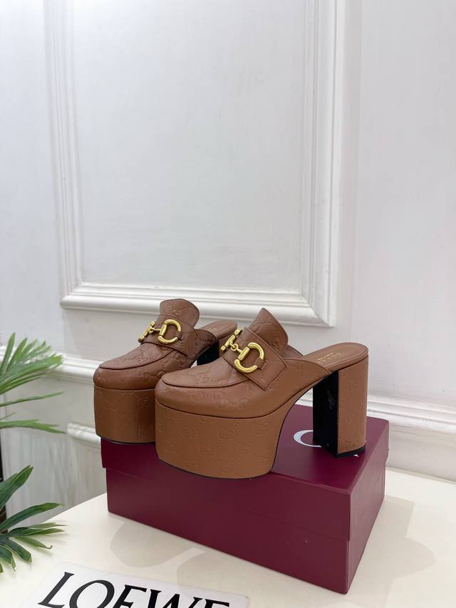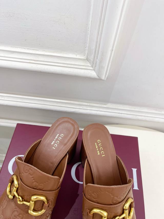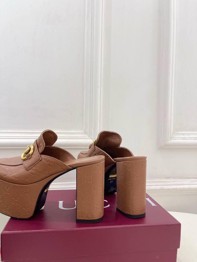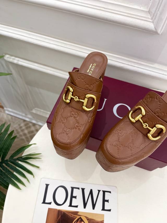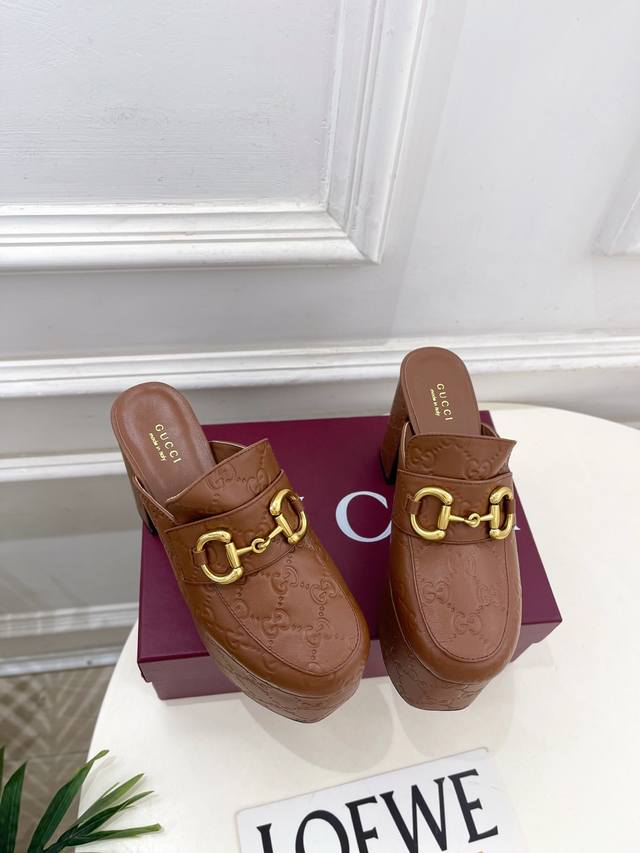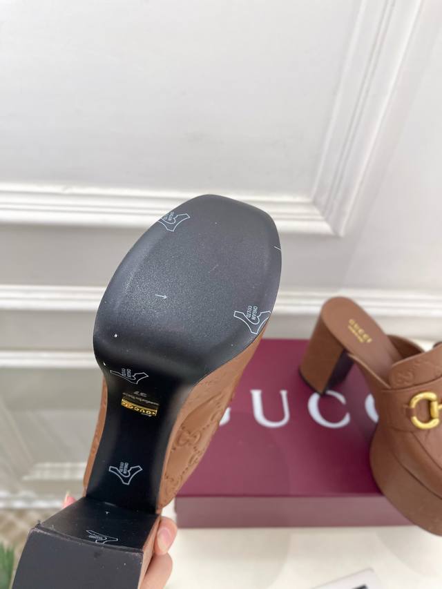 Gucci's main series is finally here! A highly anticipated item! A new design for the classic Gucci classic horsebit mules, Spring/Summer new style, embossed high-heeled platform mules, top-quality import! Extremely high-end! A must-have for bloggers both domestically and internationally, retro yet fashionable, easy to style, and looks amazing on! Officially recommended, new colors continuously updated