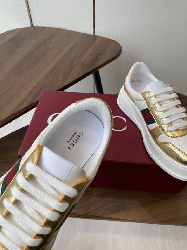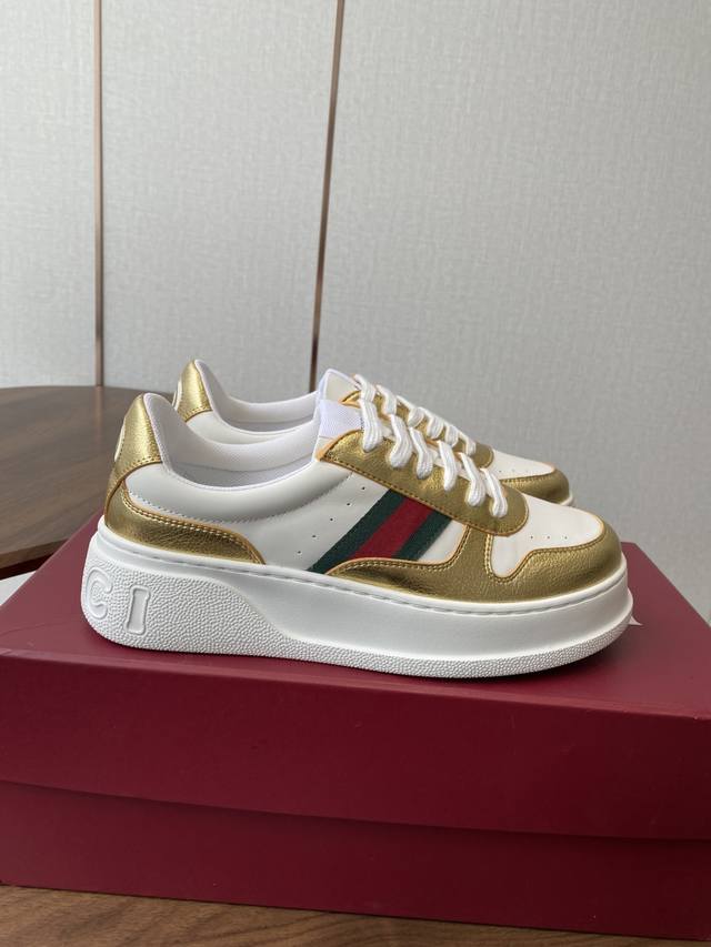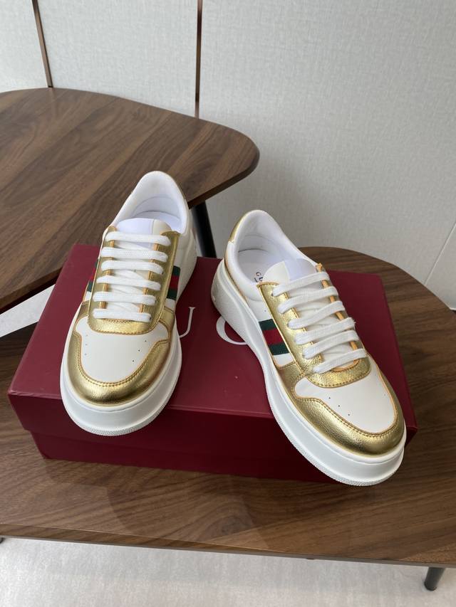 original sole with large Gucci logo, there is also a Gg logo on the heel, 5cm height increase thick sole, classic Gucci ribbon
