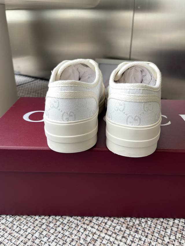 Gucci 25Ss new Gg canvas casual shoes. This sneaker is crafted with iconic Gg canvas, cleverly blending archive design with modern aesthetics. The bold and avant-garde silhouette is paired with a "Gucci" print embossed rubber sole to create a striking piece that is both individual and comfortable to wear.