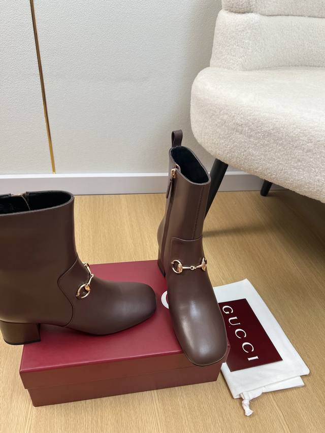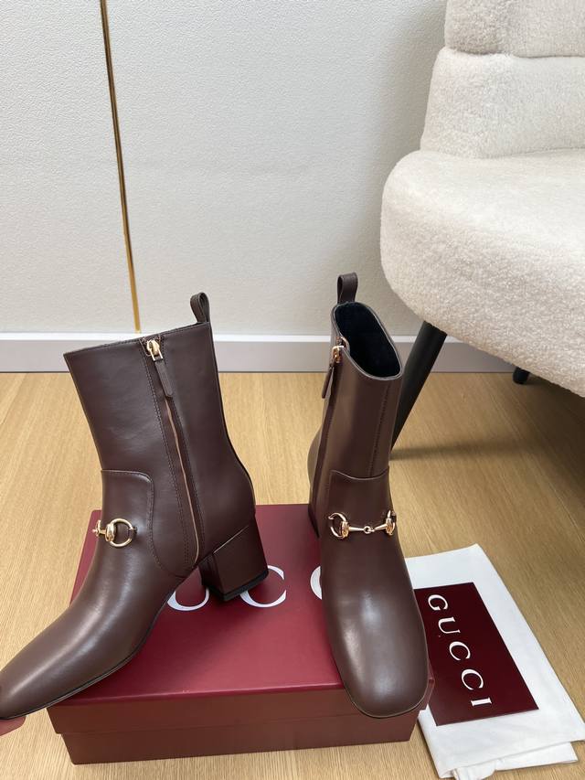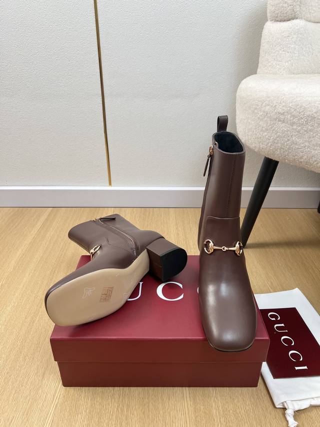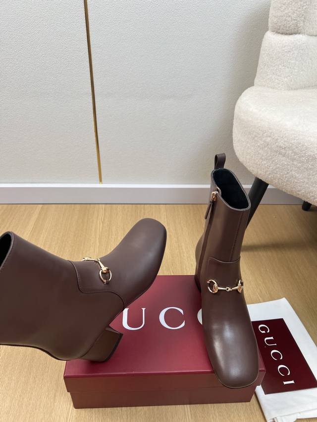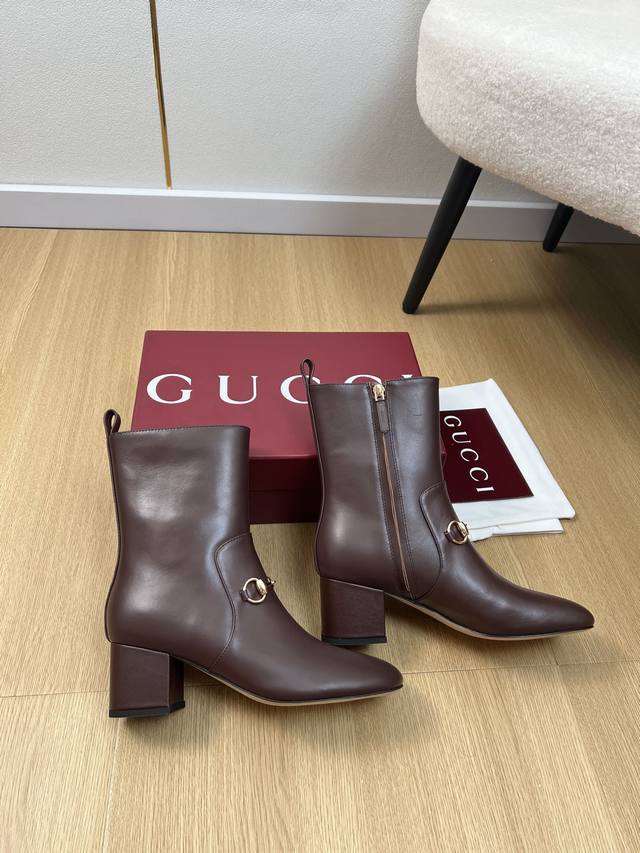 Gucci 5 DDD Gucci 2025 Fall/Winter New Arrival Classic Horsebit Chunky Heel Ankle Boots DDD Easily complements any outfit. A simple design with diverse options, not just seemingly simple, but intricately detailed. Perfect for both casual and outings, these boots feature a thick sole, full toe, and wide fit for exceptional comfort. Suitable for both sporty and casual business occasions. DDD Upper: Original custom calfskin DDD Lining: Sheepskin lining DDD Outsole: Italian imported genuine leather DDD Heel height: 5.5cm DDD Sizes: 35-42, 40, 41, 42 (custom orders, no returns or exchanges) DDD Factory price: DDD