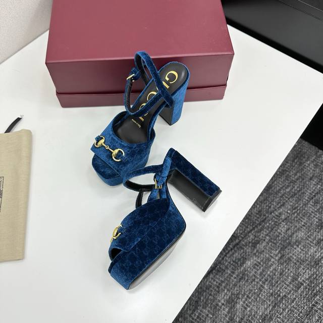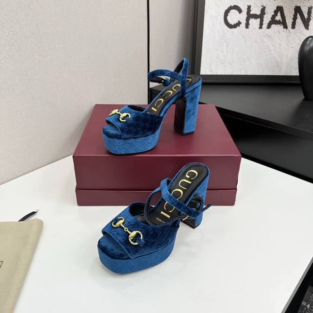 Gucci Classic Horsebit Wedge Sandals. Gucci's iconic horsebit buckle meets a chic velvet embossed wedge heel. A glamorous and comfortable fashion feast begins. These sandals are a passionate collision of classic and modern styles. Every step is a confident expression of Italian fashion. They cleverly lengthen the leg line and enhance overall temperament, allowing you to easily display an elegant posture while walking. The platform design increases stability, making walking more comfortable and less tiring. The material is original custom velvet. The inner lining and insole are made of lambskin. The outsole is made of imported Italian genuine leather. Heel height: 10.8cm, Platform: 3.3cm. Size: 35-39, 40, 41, 42 (custom sizes available).