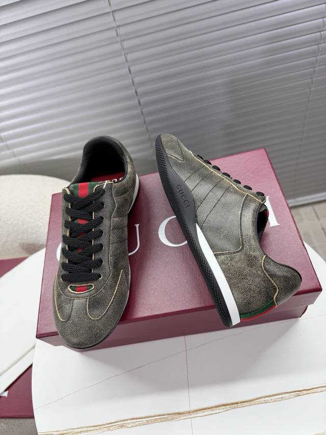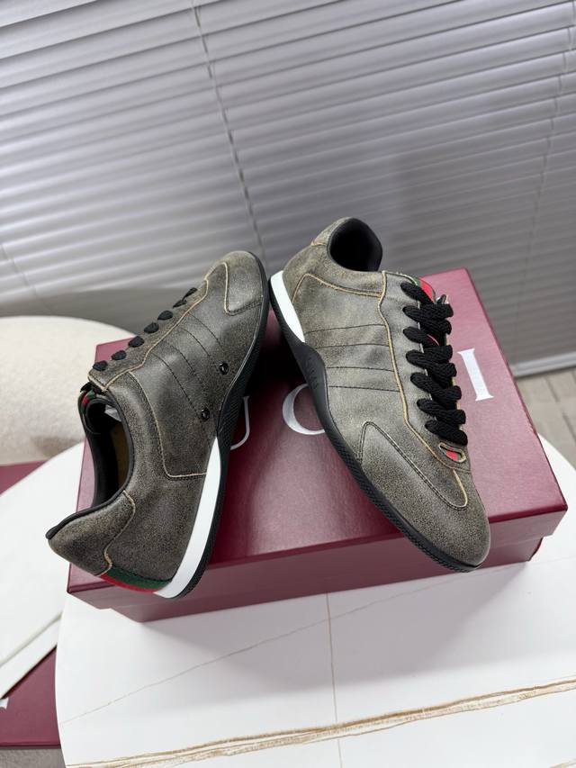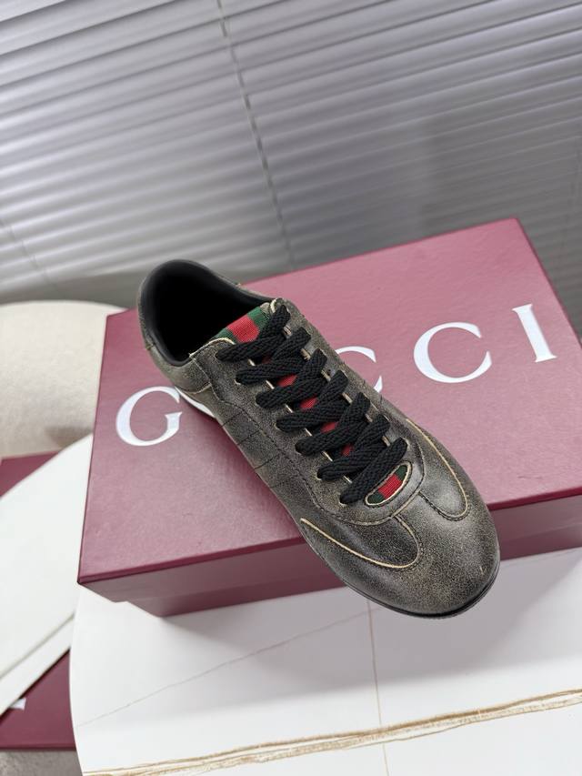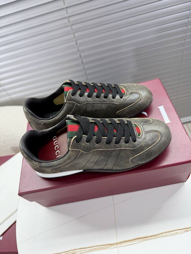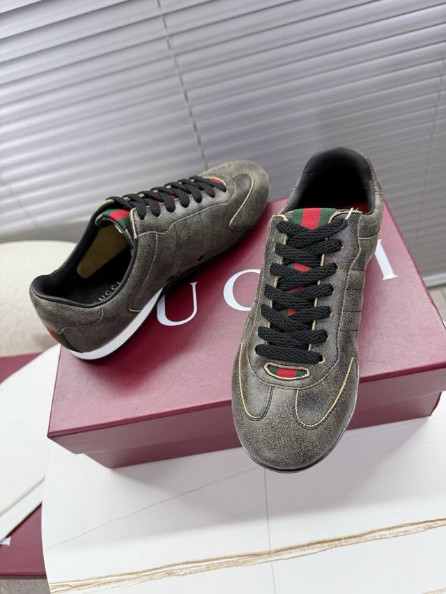 Gucci Couple Retro German Trainer Shoes; Sneakers; Thin-soled Shoes DDD Classic retro style German trainer shoes that will never fade, an absolute must-have for everyone DDD Original cowhide suede upper, breathable mesh insole, original TPU sole, Gucci exclusive webbing on the tongue and heel DDD Women's 35-40 Men's 39-45 True to size DDD
