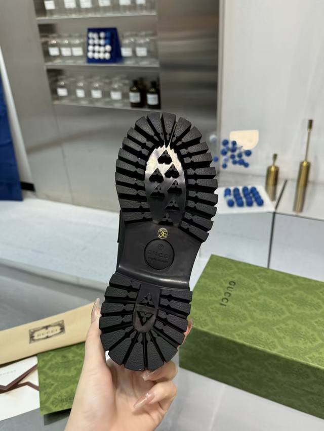 Gucci Dr. Martens Boots DDD The iconic pattern continues to shine in Gucci's new collection. The new collection features meticulously crafted horsebit hardware, showcasing the brand's equestrian heritage. These women's boots are made of leather with a rubber grooved sole. DDD Material: Imported cowhide leather. Cuff height: 4.5 cm. DDD Sizes: Women's 35-42# Men's 39-45# DDD