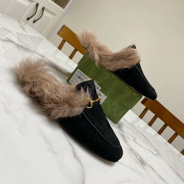 Gucci furry slippers, a wildly popular furry shoe in the fashion world, worn by Tong Liya, Yang Mi, and Gulnazar. All the internet celebrities, stars, and street style icons are wearing them. The upper is made of fine sheepskin, the lining is Tuscan wool, and the sole is genuine leather. Sizes: 35, 40 , 41, 42. Custom sizes available, no returns or exchanges.