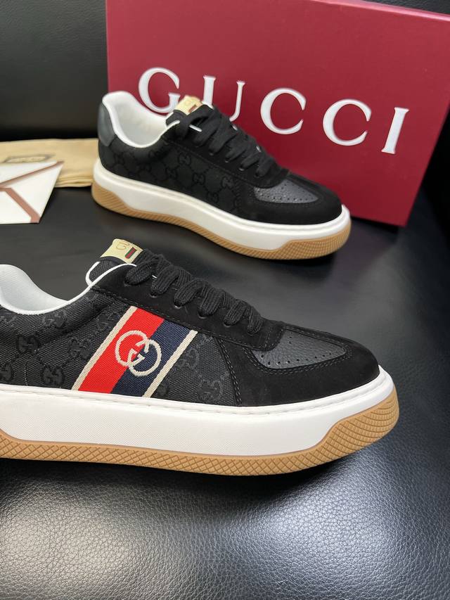 Gucci high-quality top-tier craftsmanship, new Gucci boutique style, original factory configuration, Italian imported cowhide paired with printed fabric, imported cowhide lining, breathable and comfortable, sole: original factory-supplied sole for super comfort, original factory quality, welcome to compare, sizes 38-44, custom sizes 45 and 46 available.