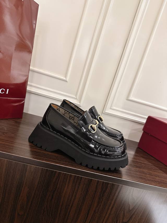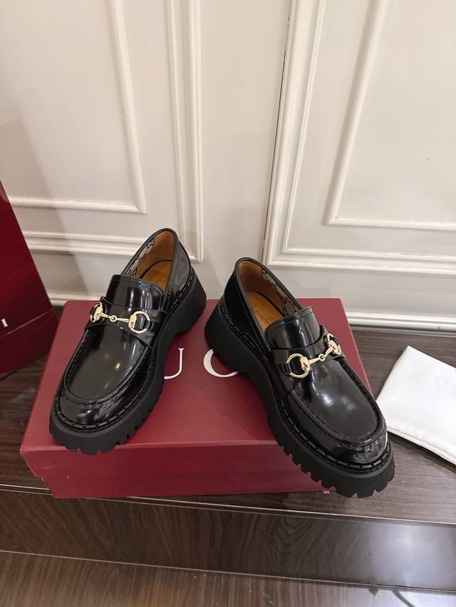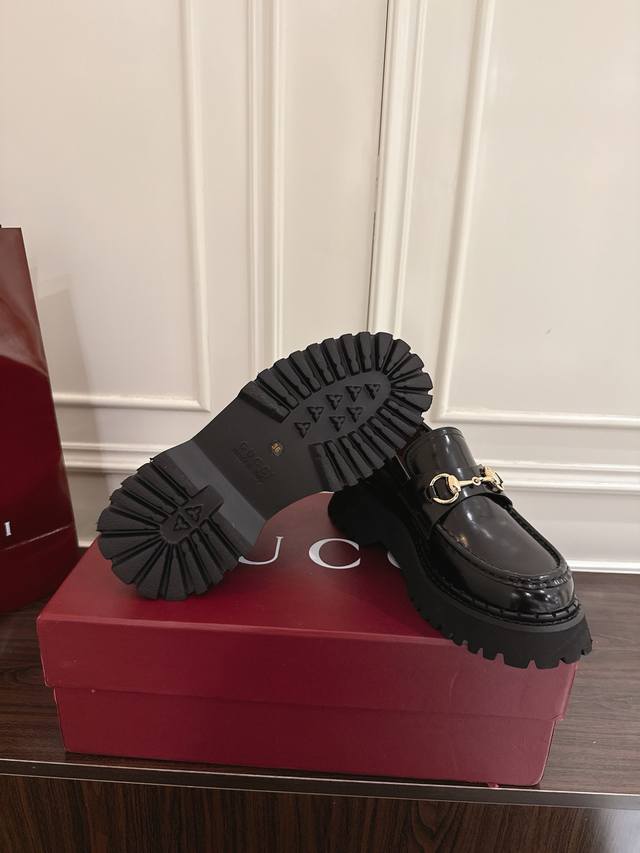 Gucci Horsebit Loafers with Grooved Sole DDD As a tribute to the brand's equestrian origins, the horsebit, having withstood the test of time, blends rich historical heritage with modern fashion trends into a unified whole DDD Leather upper DDD Thick sole DDD Sizes: 35-42# 39-46# DDD