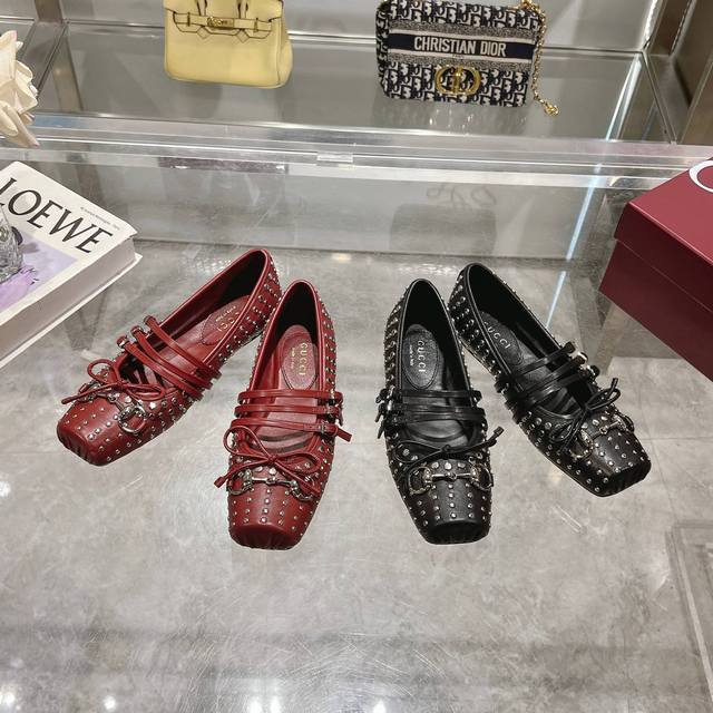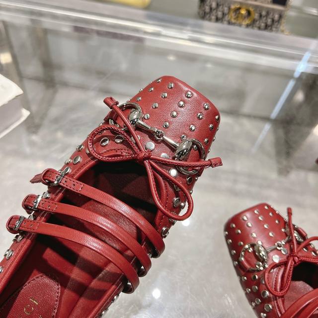 These iconic Horsebit ballet flats feature a square toe design with an elegant bow detail, paying homage to the traditional ballet slipper silhouette. Crafted from Gucci Ancora lambskin leather, they're cleverly embellished with a light gold-toned Horsebit. The "Sacchetto" construction and soft, padded insole create an exceptional wearing experience.