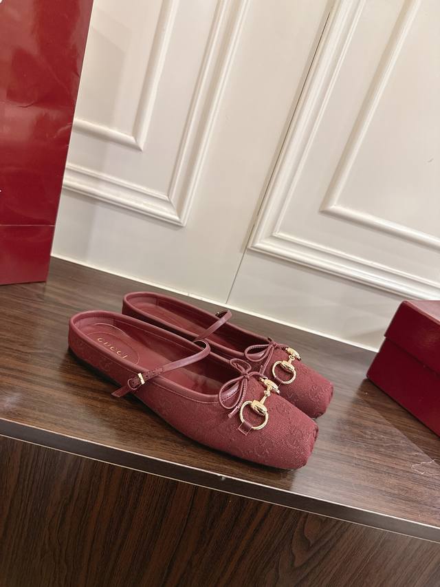 , Fall/Winter 2025 Collection). These horsebit flat ballet mules feature a square toe design with elegant bow details, paying homage to traditional ballet shoe styles. Crafted from leather and adorned with palladium-toned hardware, the Sacchetto construction ensures exceptional comfort. (