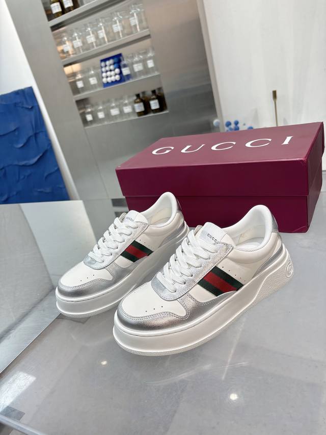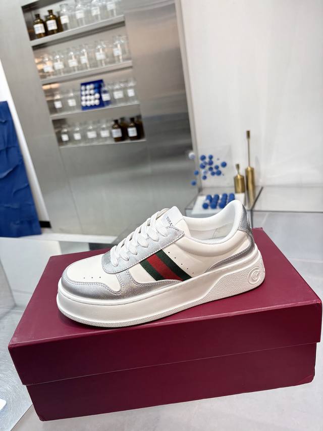 -level Gucci latest IP lightweight platform white sneakers, instantly adding 4cm height!