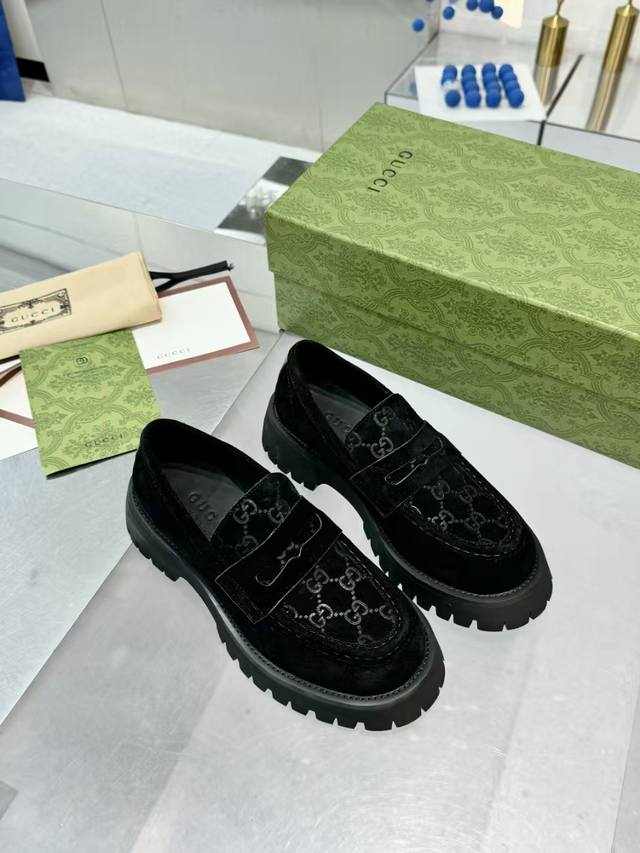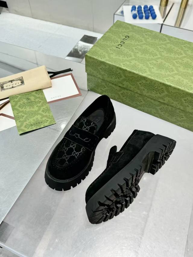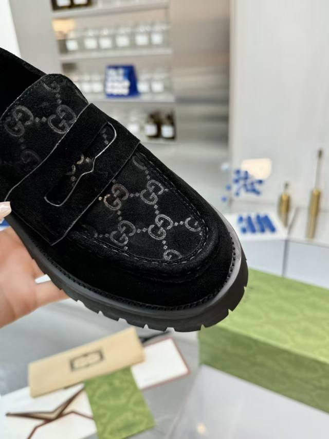 Gucci Loafers DDD The iconic pattern continues to shine in Gucci's new collection. The new collection is meticulously crafted, showcasing the brand's equestrian heritage. These loafers are made of leather and feature a rubber grooved sole. DDD Material: Imported cowhide embossed DDD Sizes: Women's 35-42# Men's 39-45# DDD