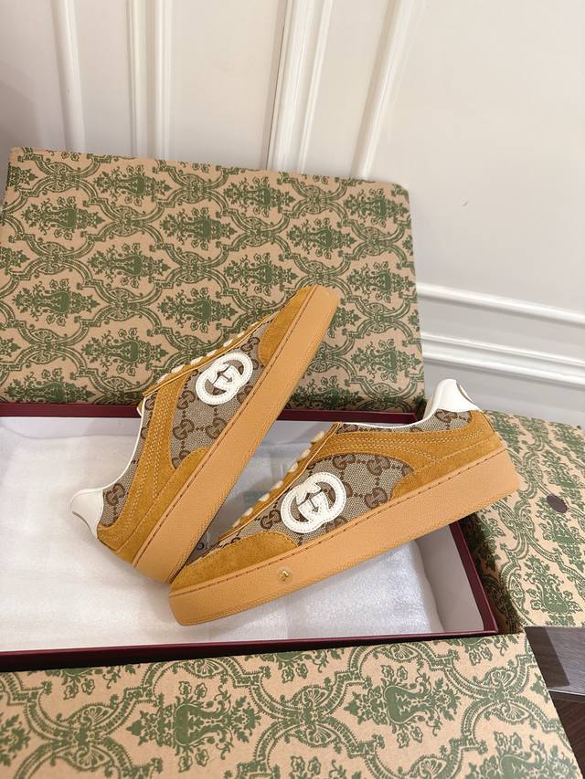 Gucci New Couple Style Double G Casual Sneakers (White) These shoes are crafted from soft suede, exuding a sophisticated and modern charm. The classic Interlocking G logo elegantly highlights the streamlined silhouette, adding a touch of refined touch to the design. Comes with exquisite boutique packaging. Upper: Suede Gg canvas. Sizes: 35-45 (Women's 41.45). Custom orders are non-refundable and non-exchangeable.