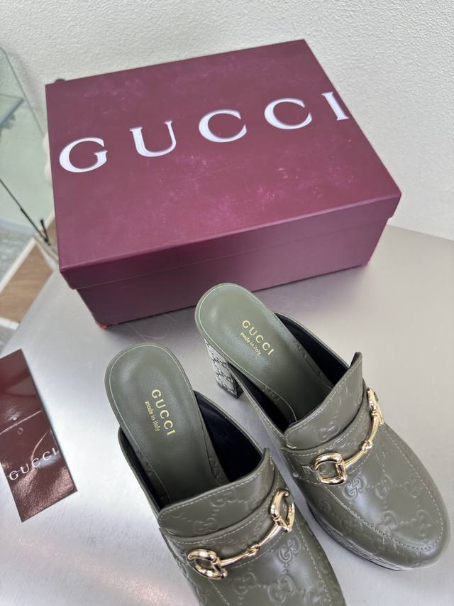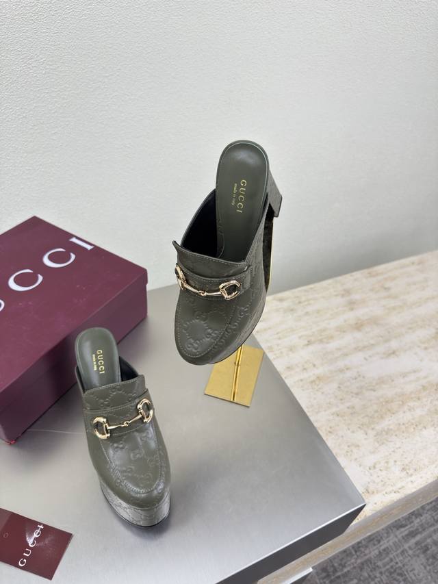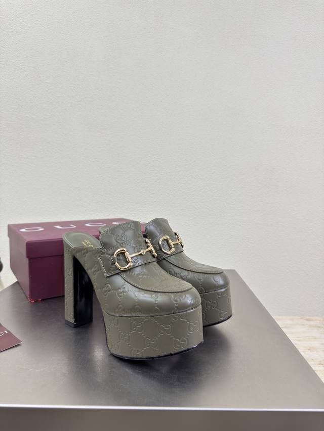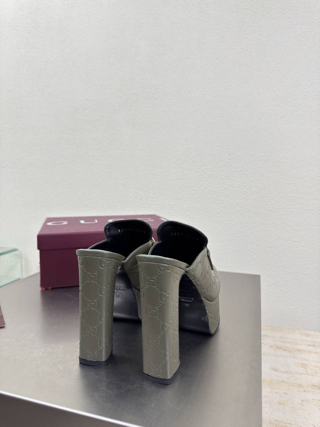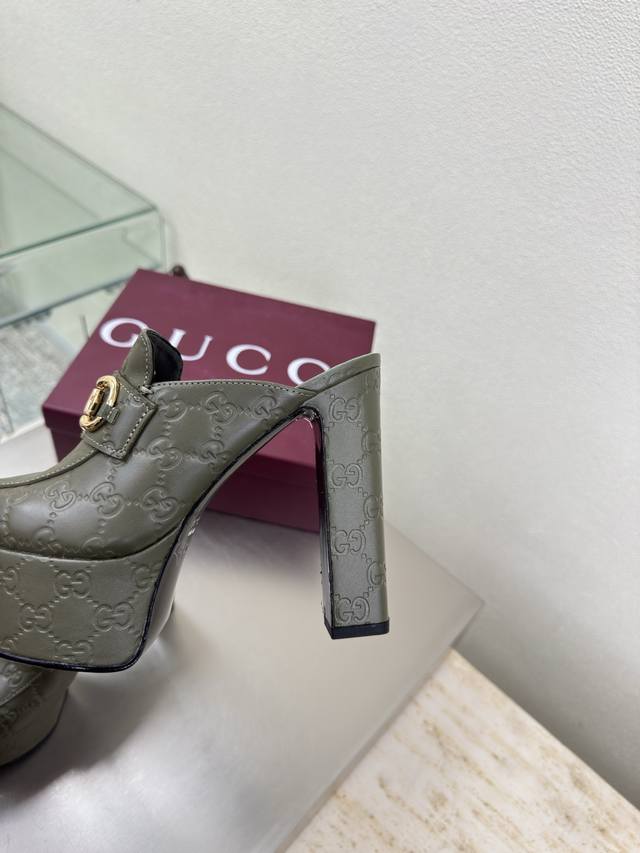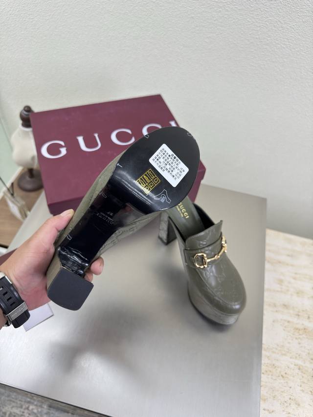 Gucci DDD New Waterproof Platform High-Heeled Sandals DDD Heel height 13Cm, front platform 4.5Cm DDD Olive green cowhide embossed logo DDD Show shoe style Gucci sky-high sandals with built-in platform and open back DDD Fashionable brand logo added, with super high recognition. All brands are competing for the first and last to release super high heel series. Gucci is not outdated. Gucci Paris fashion show style DDD This series interprets a new fashion charm and continues the super high heel design. It is deeply favored by well-known bloggers overseas. Millions of fans and bloggers have endorsed it. It is a best-seller at home and abroad and is already sold out in China. Top version candy color matching. Each color is absolutely beautiful. There are 13 colors to choose from. DDD Upper: Imported fabric texture cowhide stone texture cowhide DDD Lining: Imported sheepskin DDD Sole: Original genuine leather outsole DDD Heel: 13.5Cm Waterproof platform: 5Cm DDD Size: 35 36 37 38 39 40 41 42 40 41 42 Order DDD Packaging: Gucci full set original packaging DDD
