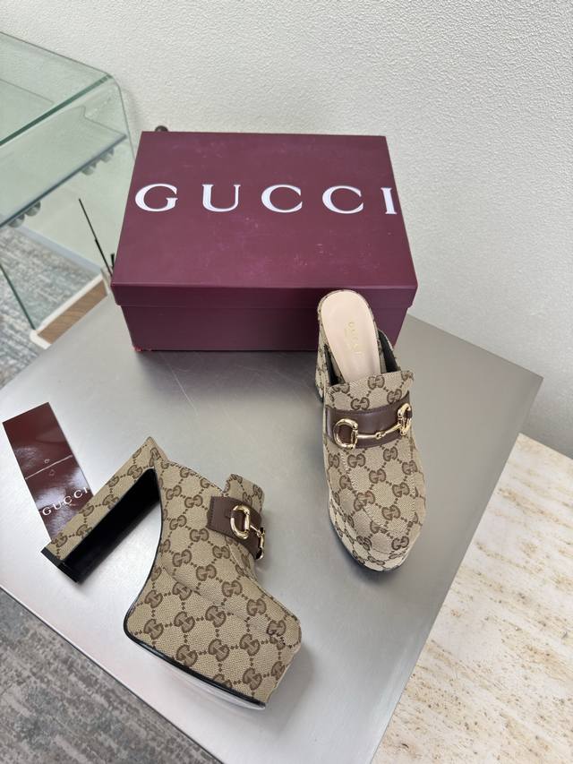 Gucci DDD New Waterproof Platform High-Heeled Sandals DDD Heel height 13Cm, Front platform 4.5Cm DDD Apricot monogram DDD Show shoe style Gucci sky-high sandals with built-in platform and open back DDD Fashionable brand logo added, with super high recognition. All brands are competing for the first and last to release super high heel series. Gucci is not outdated. Gucci Paris fashion show style DDD This series interprets a new fashion charm and continues the super high heel design. It is deeply favored by well-known bloggers overseas. Millions of fans and bloggers have endorsed it. It is a best-seller at home and abroad and has been sold out in China. Top version candy color matching. Each color is absolutely beautiful. There are 13 colors to choose from. DDD Upper: Imported fabric texture cowhide stone texture cowhide DDD Lining: Imported sheepskin DDD Sole: Original genuine leather outsole DDD Heel height: 13.5Cm Waterproof platform: 5Cm DDD Size: 35 36 37 38 39 40 41 42 40 41 42 Order DDD Packaging: Gucci full set original packaging DDD