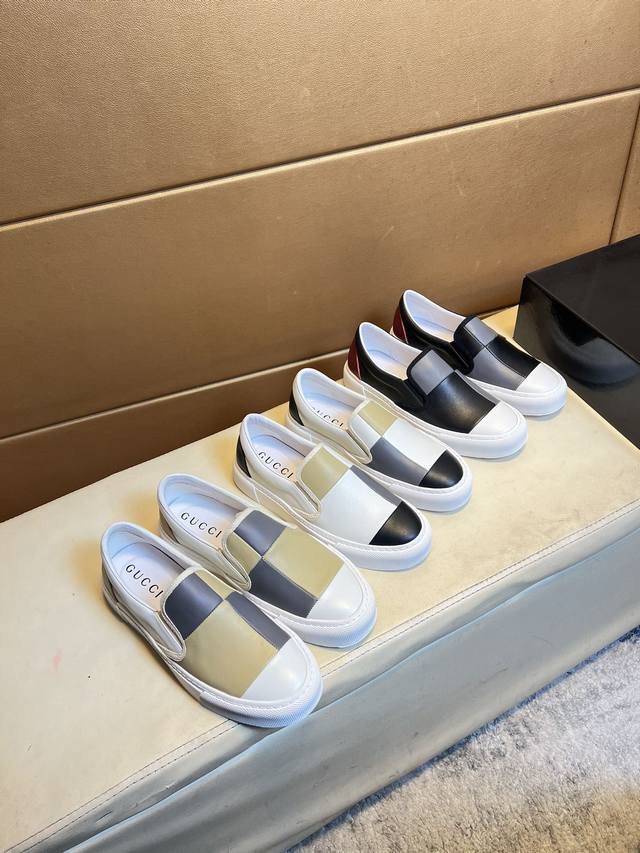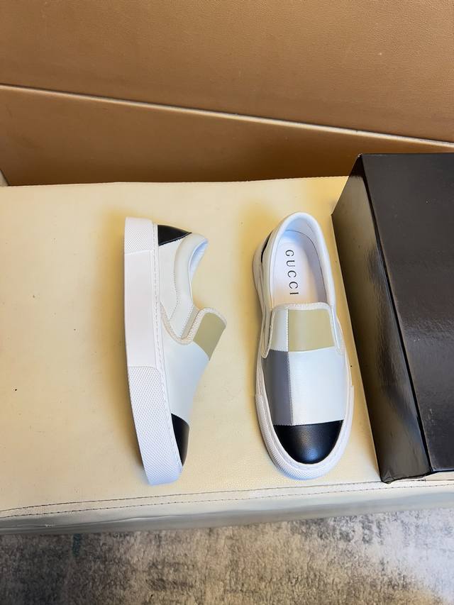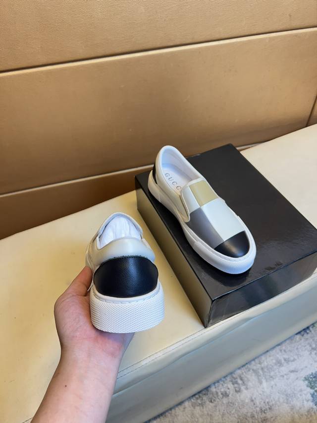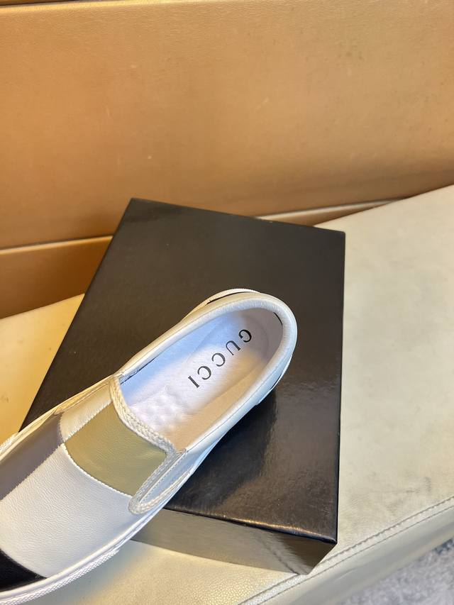 Gucci original quality. Unique modern style sneakers. A must-have casual shoe for trendy men. Italian imported original brand, imported original leather, pigskin lining to prevent fading and rubbing. Sole: original factory supply, French lazy style design, fits snugly to the foot, original quality, super comfortable original sole. Just like the real product photos, even better in person. High-quality sneakers, men's sizes: 38-44.