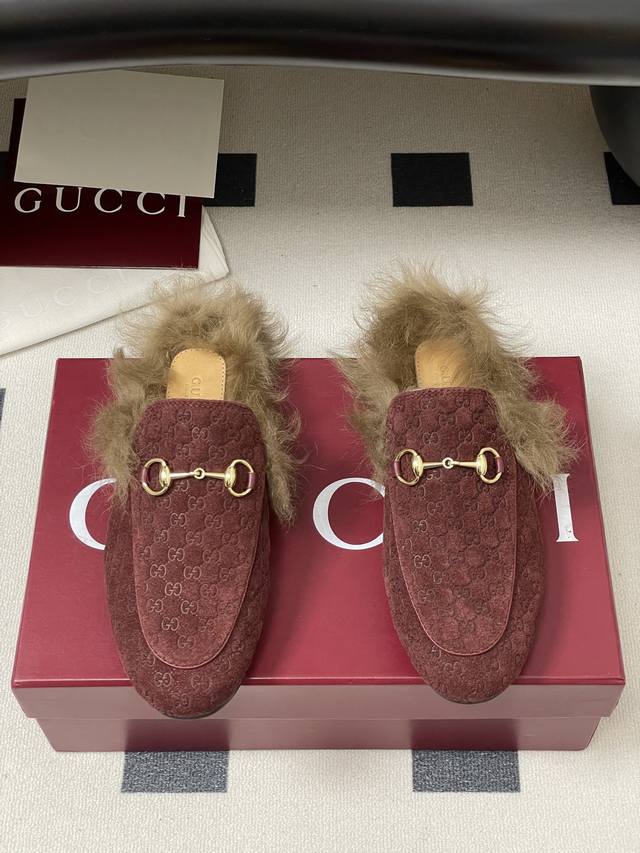 Gucci Princetown Classic Wool Slippers, Double G Suede Mules, Horsebit Flat Slippers, Tuscan Wool Slippers. These shoes are made of soft material with a refined and flowing silhouette, showcasing everyday elegance! Original Double G suede cowhide upper, Tuscan wool lining, Italian genuine leather outsole. Sizes: 35-42 [40, 41, 42 custom-made].
