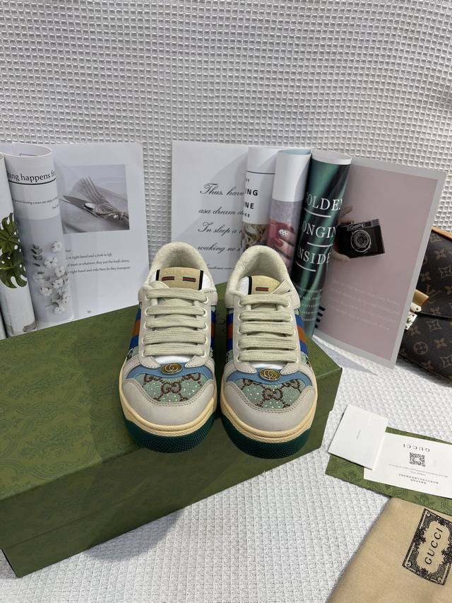 Gucci rhinestone shoes, NFC with barcode chip, high-quality distressed sneakers - a hot item this year! A must-have item, sold out in nine out of ten years! New colors added - the ultimate version on the market! Original design developed by DDD. Fabric, material, outsole details can be compared at will! DDD High-quality 1:1 replica of the rhinestone chain... Metal cherry pendant, versatile crystal cylindrical label, Gucci original custom narrow webbing. DDD Super sparkly rhinestone chain. The cherry decoration is detachable, allowing for two different combinations to express your personality. DDD Exclusive distressed leather. Hand-distressed for a very textured feel, exuding a high-end look! DDD Detailed workmanship can be seen in the pictures, not missing a single line. DDD Original Terry Cloth Lining: Delicate, soft, and breathable for enhanced comfort. Features include a custom-molded, two-tone design with Goodyear welt construction. Material: Original imported high-quality silk and cowhide. Outsole: Original TPU outsole (wider bottom, narrower top). European-style packaging included. Women's sizes 35, 40, 34, 41. Custom orders are non-refundable and non-exchangeable.