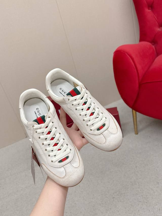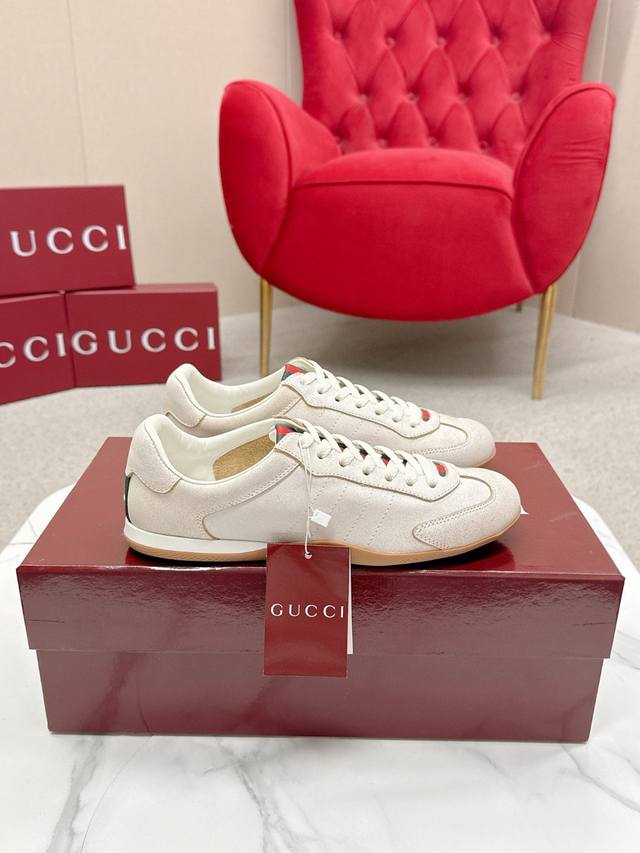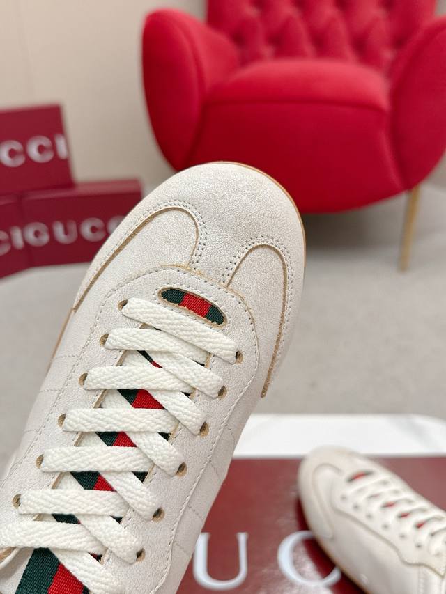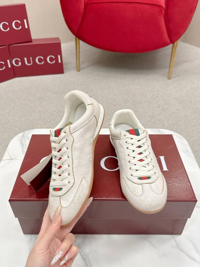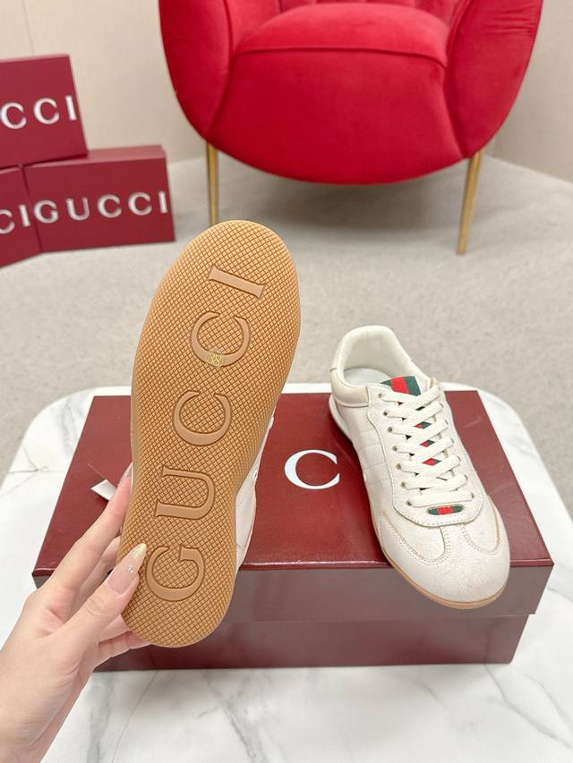 Gucci Shift Series Couple Retro German Training Shoes Casual Sports Shoes Ddd Original Purchase and Development The Gucci Shift series is newly launched, with a lightweight design that reinterprets sporty style. The clean silhouette adds to its natural elegance, showcasing exquisite quality with every movement. The webbing details act like a continuous ribbon throughout the design, while the side stitching details add a finishing touch. Ddd Material: Original Custom Imported Top Layer Cowhide Ddd Lining: Original Custom Soft Sheepskin Lining Ddd Outsole: Original Mold Anti-Slip TPU Material Ddd Sole Thickness: 2cm Ddd Size: Women's 35-40, Women's 41 (Made to order, no returns or exchanges) Ddd