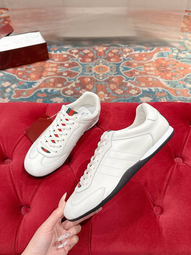 Gucci Shift Series Couple Retro German Training Shoes Casual Sports Shoes Ddd Original Purchase and Developed by Ddd The Gucci Shift series is newly launched, with a lightweight design that reinterprets sporty style. The clean silhouette adds to the natural feel, showcasing exquisite quality with every movement. The webbing detail is like a continuous ribbon running through the entire design, and the side stitching details add a finishing touch. Size: Men's 39-44 45 Custom-made, no returns or exchanges Ddd
