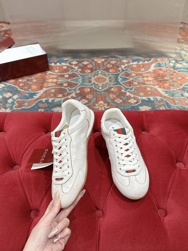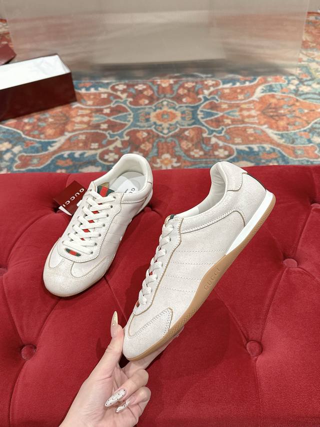 Gucci Shift Series Couple Retro German Training Shoes Casual Sports Shoes Ddd Original Purchase and Developed by Ddd The Gucci Shift series is newly launched, with a lightweight design that reinterprets sporty style. The clean silhouette adds to the natural feel, showcasing exquisite quality with every movement. The webbing detail is like a continuous ribbon running through the entire design, and the side stitching details add a finishing touch. Size: Women's 35-39 40 Custom orders, no returns or exchanges Ddd