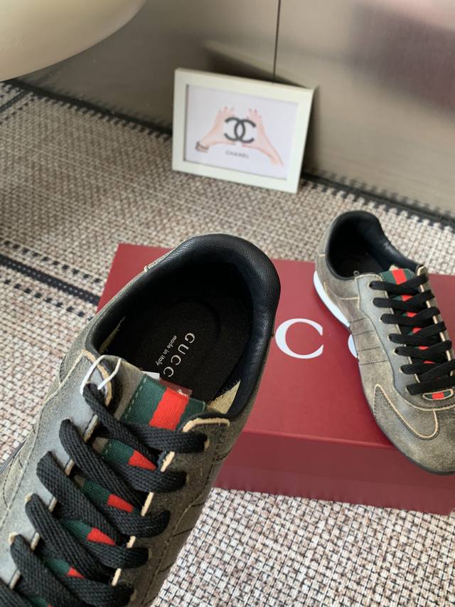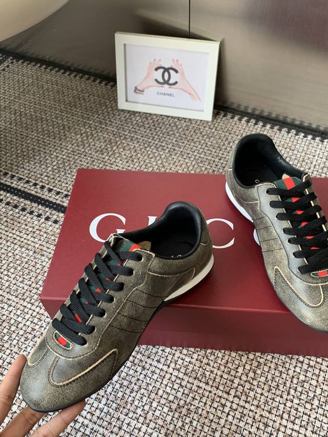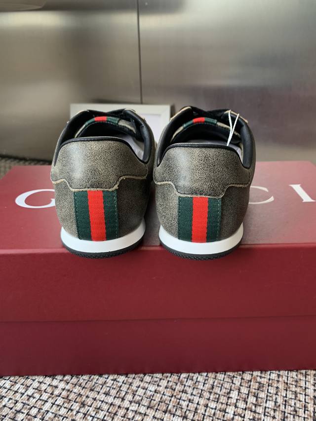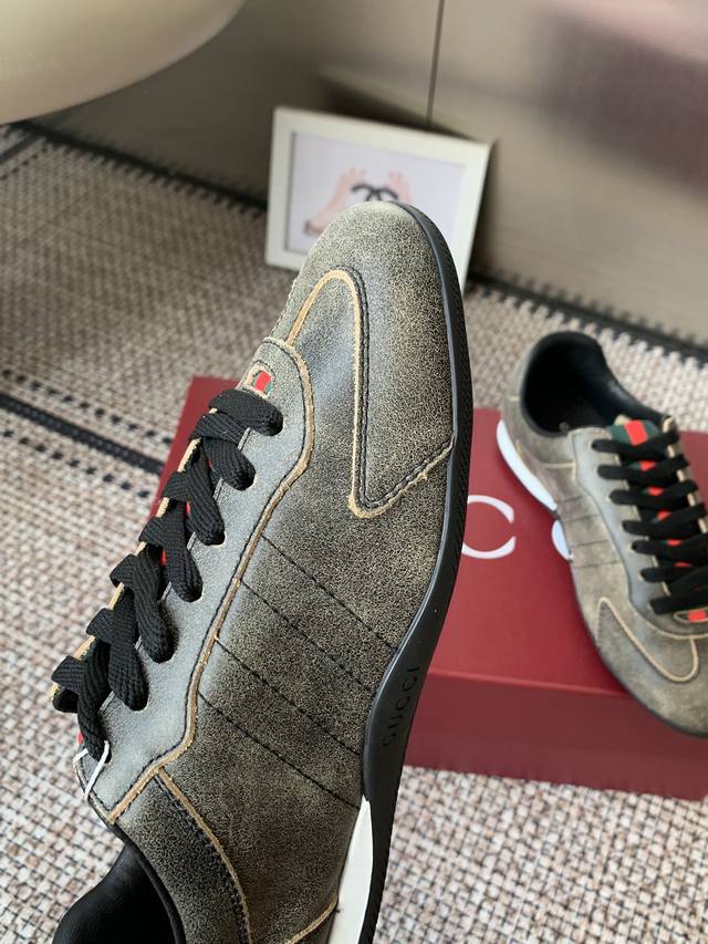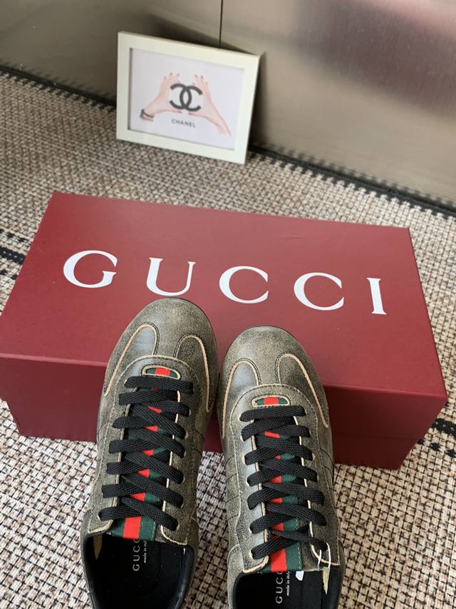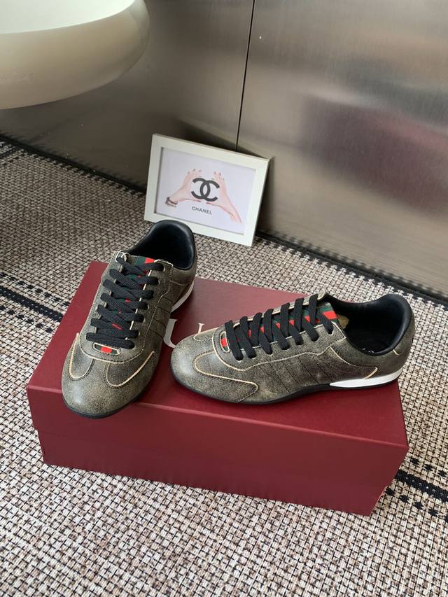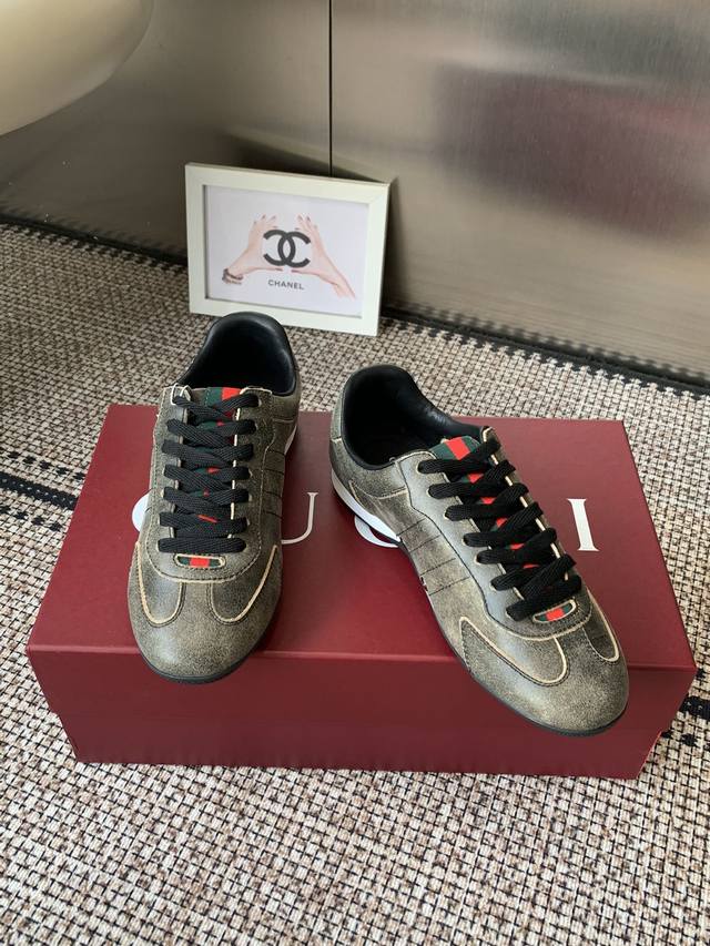 Gucci Shift Series Retro German Training Shoes Casual Sports Shoes DDD The new Gucci Shift series is now available. The lightweight design reinterprets sporty style, and the clean silhouette adds to the freedom of movement, showcasing exquisite texture. The webbing details are like a continuous ribbon running through the entire design, and the side stitching details add a finishing touch. DDD Original custom-made imported top-grain cowhide leather. DDD Original custom-made soft sheepskin lining. DDD Original molded anti-slip TPU material. DDD Sizes: 35-45 Women's 40 Men's 45. Custom-made. DDD
