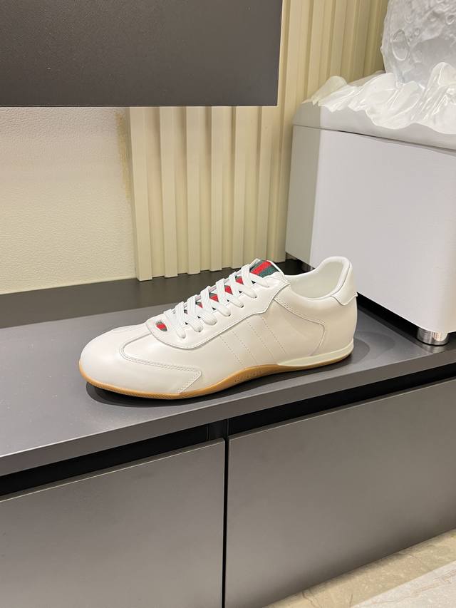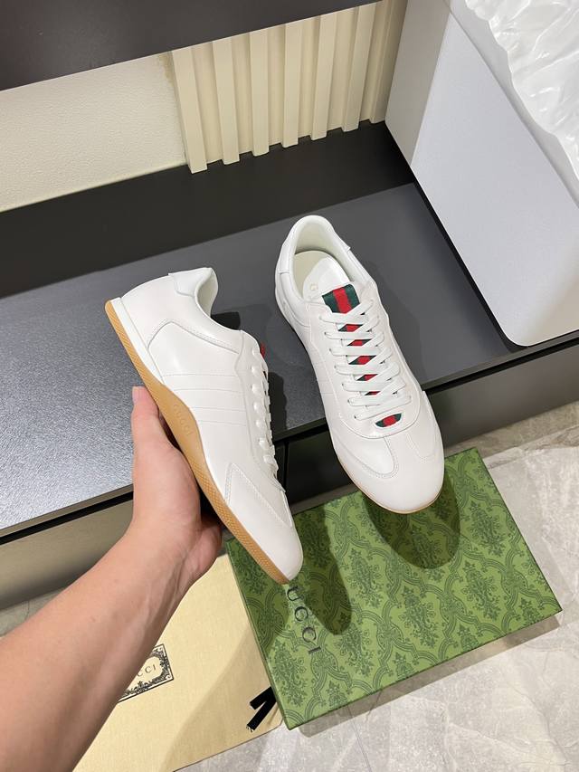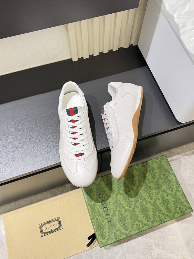 Gucci Shift series sneakers, featuring a lightweight, thin-soled design, combining suede, canvas, and technical materials for a premium feel! The tongue and heel feature red and green webbing, making them highly recognizable. The classic brown and off-white color scheme is both retro and modern. The shell-toe design makes feet appear smaller, making them a great choice for everyday wear or with skirts and trousers. The woven upper and elastic heel make them easy to slip on and off, providing a comfortable fit. Suitable for both work and casual occasions, these are one of the hottest items since Demna Gvasalia took over. Sizes: 38-45!