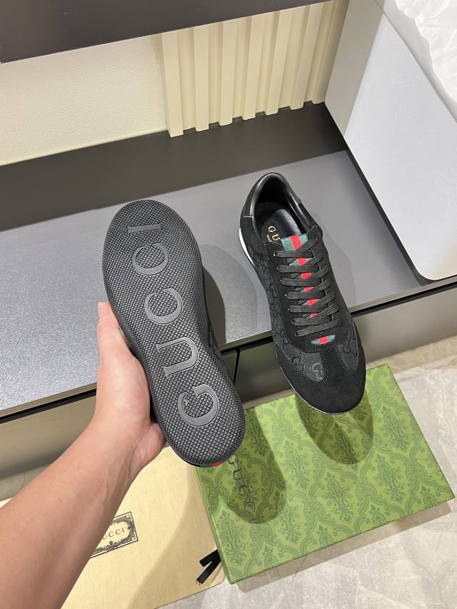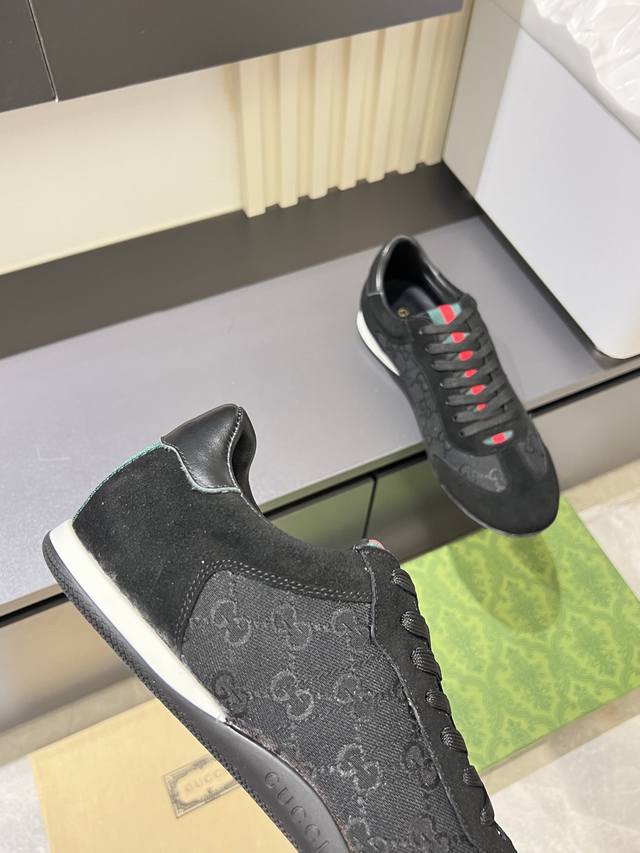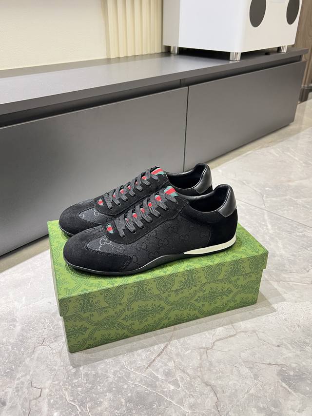 Gucci Shift series sneakers, featuring a lightweight, thin-soled design, combining suede, canvas, and technical materials for a premium feel! The tongue and heel feature red and green webbing, making them highly recognizable. The classic brown and off-white color scheme is both retro and modern. The shell-toe design makes feet appear smaller, making them a great choice for everyday wear or with skirts and trousers. The woven upper and elastic heel make them easy to slip on and off, providing a comfortable fit. Suitable for both work and casual occasions, these are one of the hottest items since Demna Gvasalia took over. Sizes: 38-45!