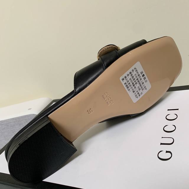 Gucci square-toe chunky-heeled sandals, featuring the classic saddle buckle, consistently stylish, simple, elegant, and versatile. The upper is made of mixed sheepskin, the lining is water-dyed sheepskin, and the sole is genuine leather. Original hardware buckle design. Heel height: 1.5cm. Sizes: 35, 39, 34, 40, 41, 42, 43. Custom orders are accepted; no returns or exchanges.