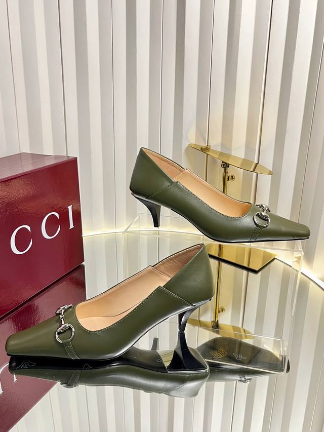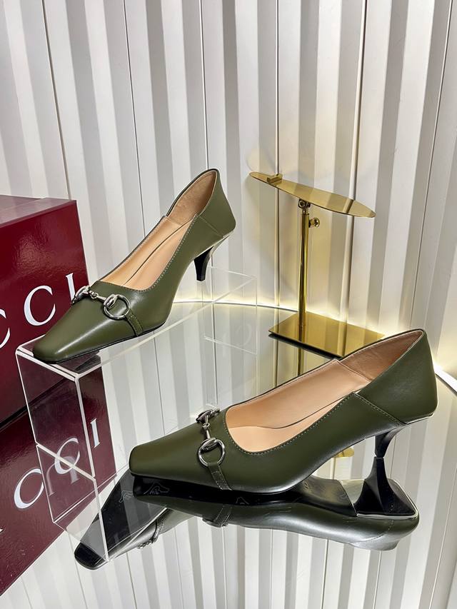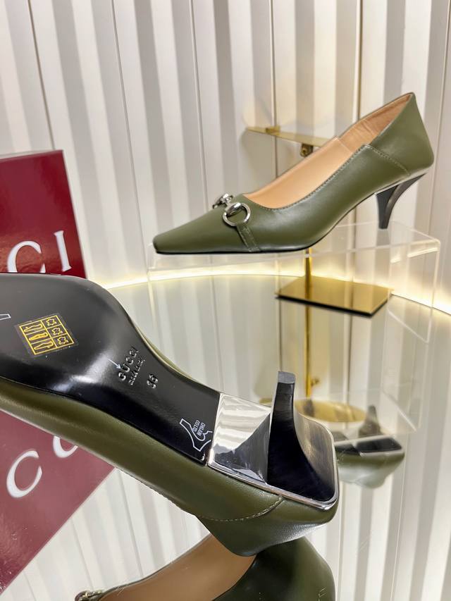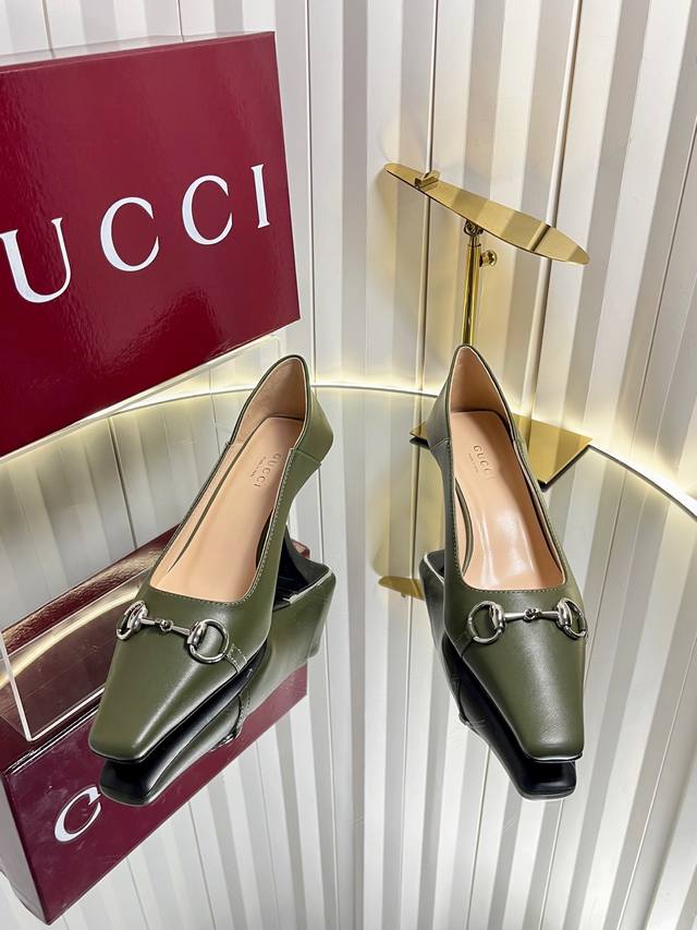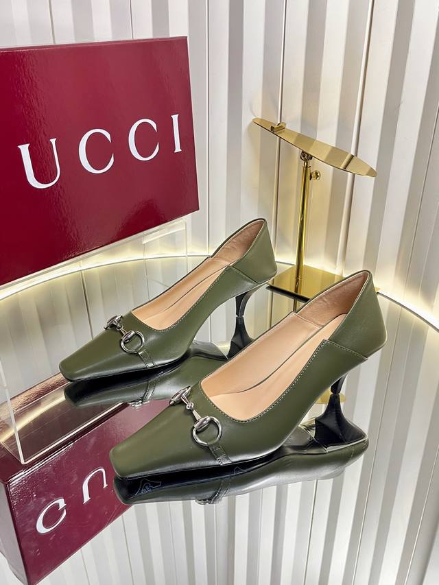 Gucci Women's New Horsebit Shoes. The upper features the most classic and iconic logo. A tribute to understated luxury, the shoe's most eye-catching feature is the soft sheepskin heel, which can be worn loosely or dragged. It's versatile enough to pair with trousers or skirts, suitable for any occasion, seamlessly blending rich historical heritage with modern style. Crafted from supple sheepskin. A pair that meets all the needs of fashionistas. Features include: Italian imported sheepskin and snakeskin upper; Italian imported sheepskin insole; imported genuine leather outsole; 6cm heel height; sizes 35-42; sizes 40, 41, and 42 are custom-made and non-refundable.