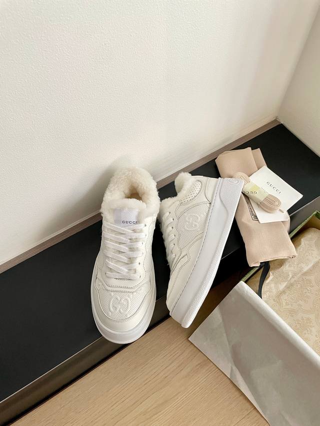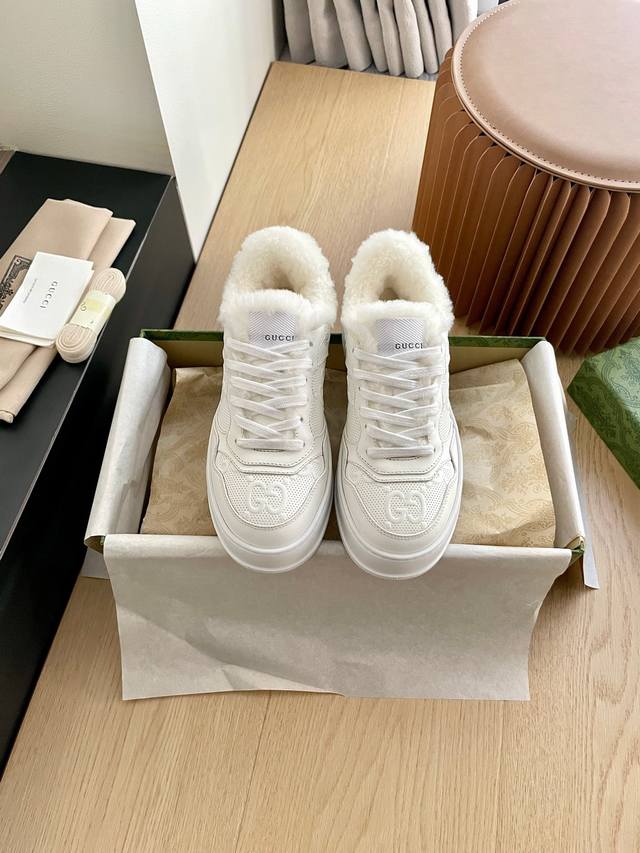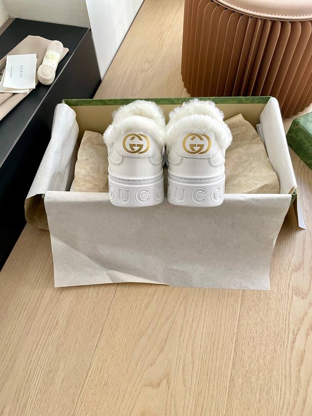 Gucci Wool-lined Biscuit Shoes, New Autumn/Winter Arrival. Perfect replica, original purchase! Upgraded for Autumn/Winter with wool lining. Sizes: 35-40. Original mold, IP foam outsole, ultra-lightweight! Distinguishing it from the PU sole in the market. Calfskin upper with embroidered details and heavy-duty craftsmanship. Genuine wool lining! Comes with full packaging.