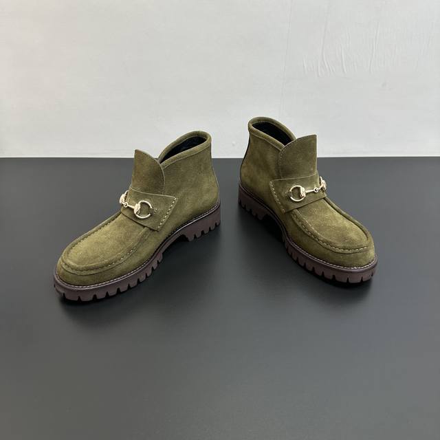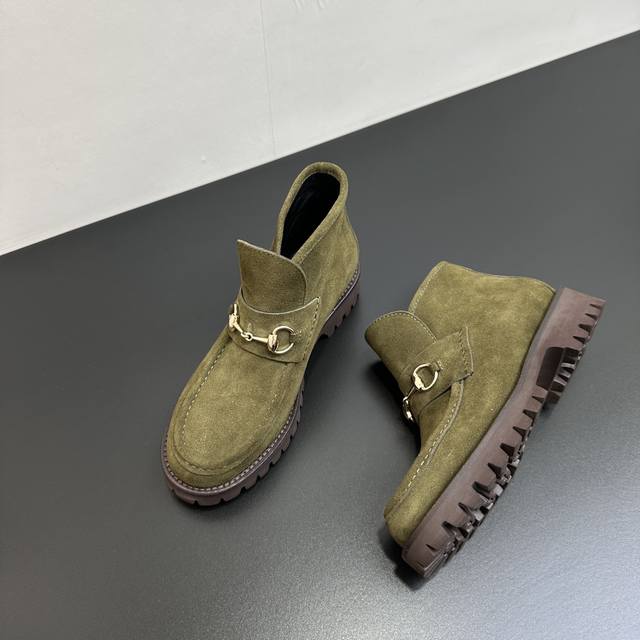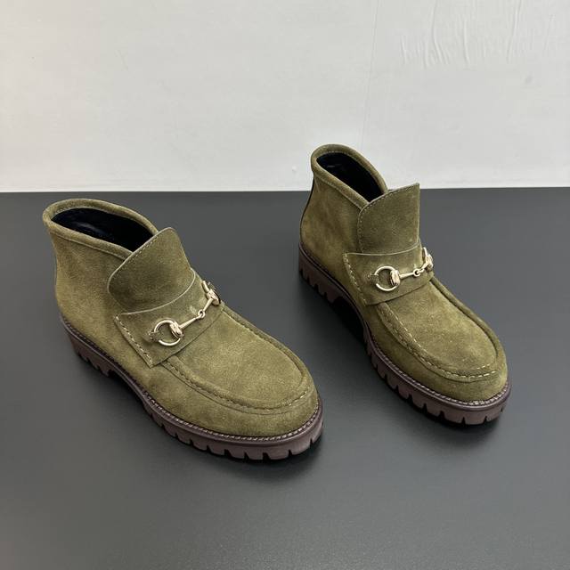 Gucci's 2025 Fall/Winter collection, featuring the iconic Horsebit Chelsea high-top boots, is finally here! This is a must-have! A reimagined take on a classic, this high-end shoe is sure to impress! A viral hit among bloggers, both domestically and internationally, this retro, stylish shoe is effortlessly stylish and incredibly easy to wear! Featured on the official website, new colors are constantly being released. Upper: Original custom calfskin leather. Lining: Imported sheepskin lining. Outsole: Custom, non-slip outsole from the original mold. Heel height: 4.5 cm. Sizes: 35-39, 40, 41, and 42 can be customized.