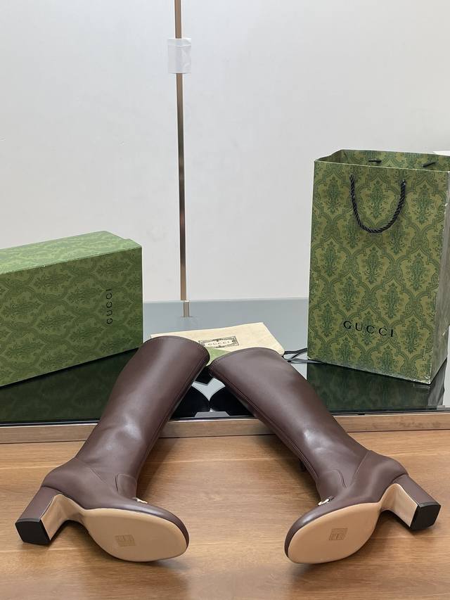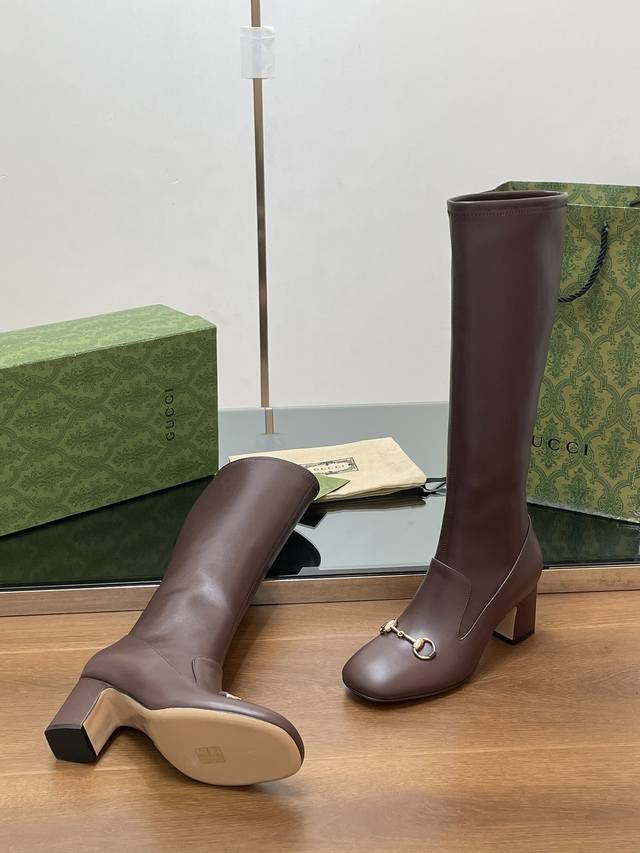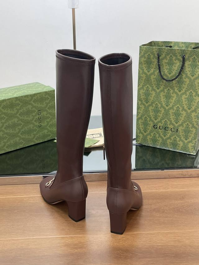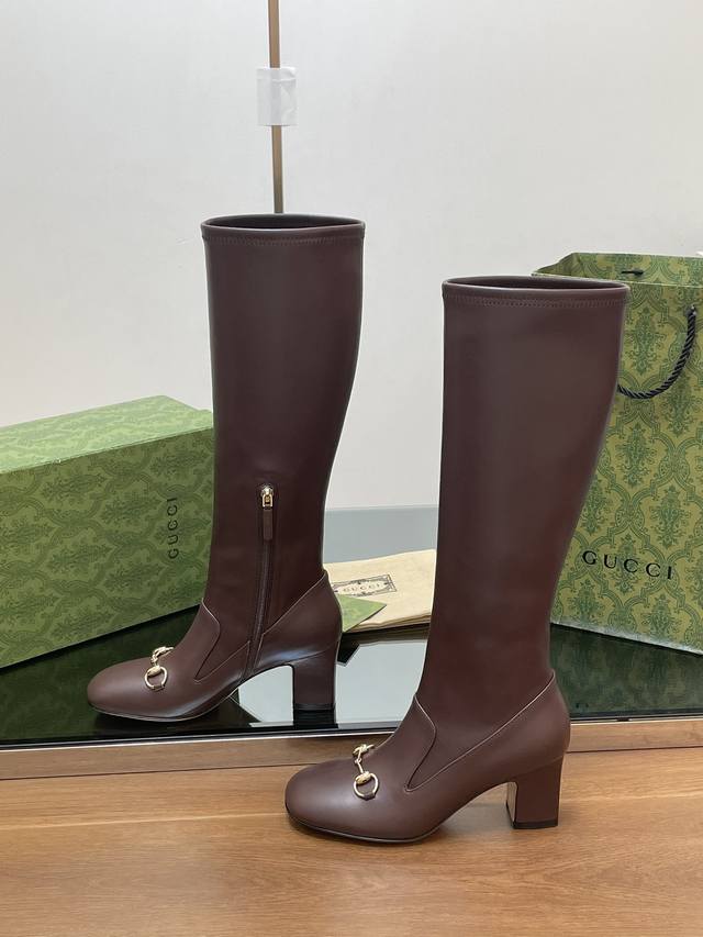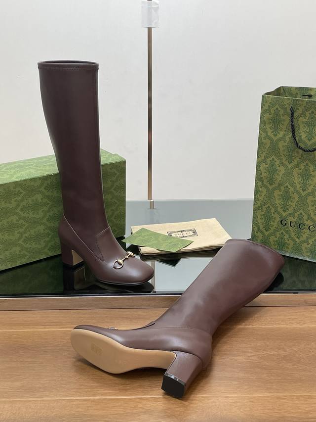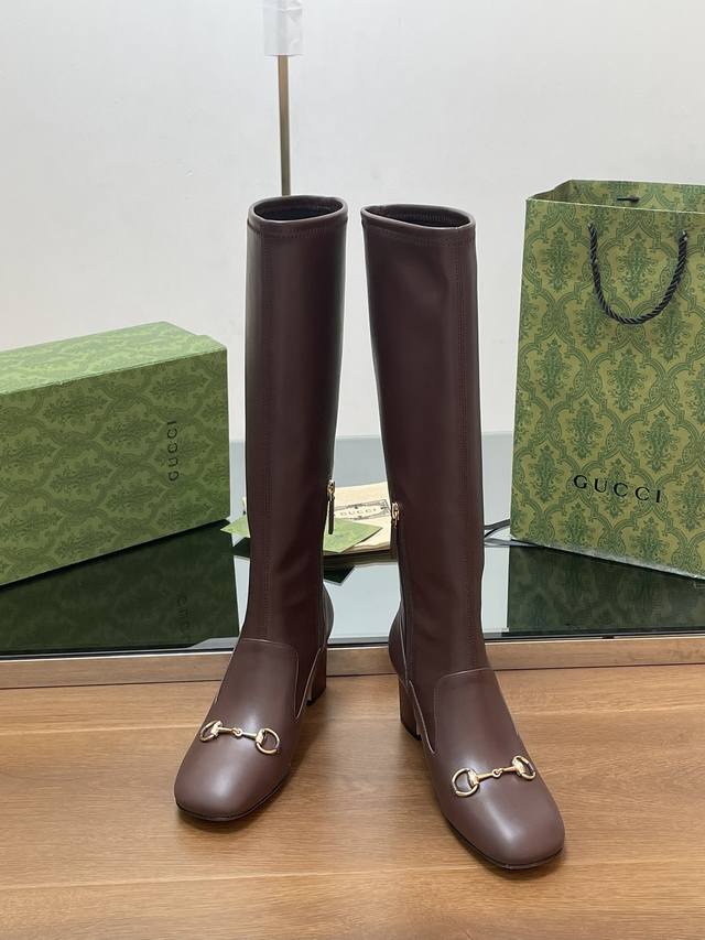 Gucci's high-end boutique, Gucci's new early fall horsebit stretch knee-high boots, available at a discounted price. Classic ankle boots with a block heel and square toe, authentic and original quality. Every detail is meticulously crafted, comparable to ZG's, for unparalleled quality!
