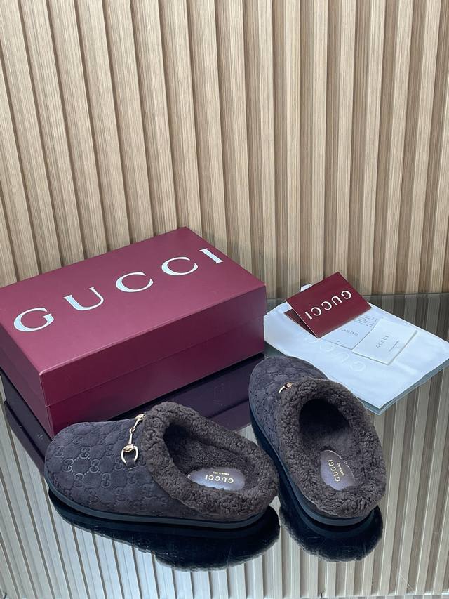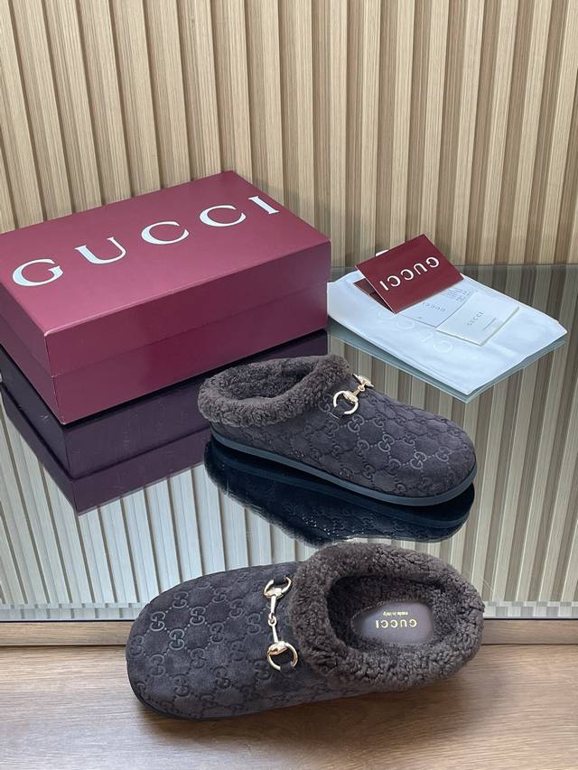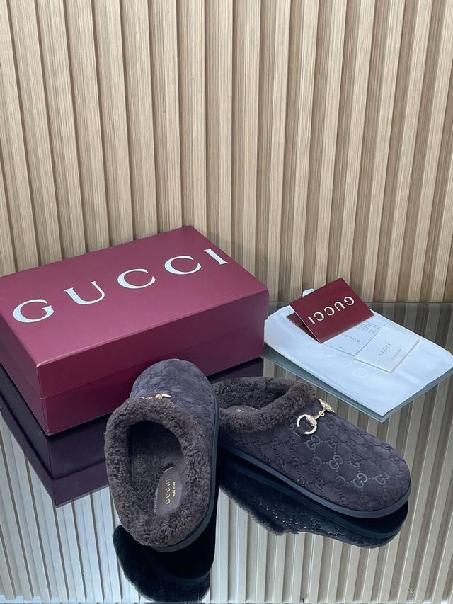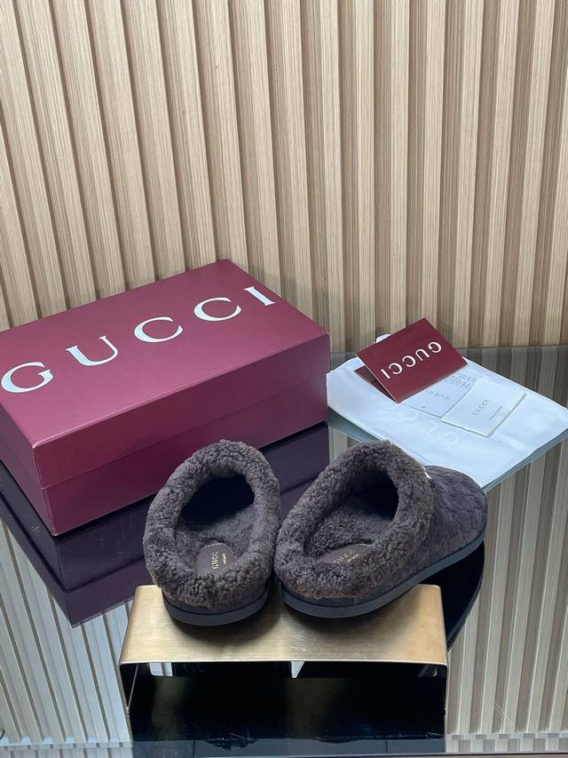 High-end version 2025 Gucci new merino wool high-end slippers autumn and winter imported mini GG embossed new Gucci mules moccasins closed toe fur shoes official website synchronized, original version 1:1 replica, the highest grade wool is softer, fluffier and denser. All material details are consistent with Yb. Year-round production. DDD Sizes 35-42 404142 Customized, no returns or exchanges DDD This slipper is a piece of history cherished by the brand, reinterpreting Gucci's equestrian tradition with iconic Clamp hardware. This slip-on sandal is made of leather and is part of the Gucci Love parade collection. High-grade mini GG embossed sheepskin deerskin environmentally friendly special material upper monogram GG classic canvas, imported merino wool lining DDD Latest double G letter rubber sole flat DDD Packaging: Full set of Anker red high-end packaging DDD