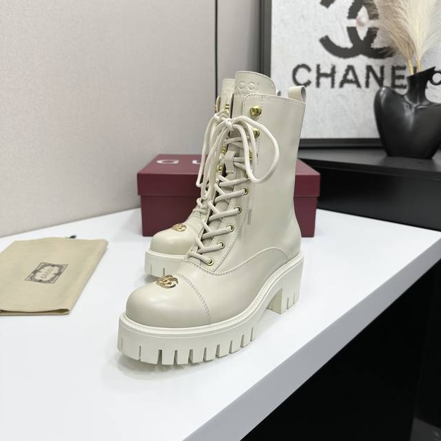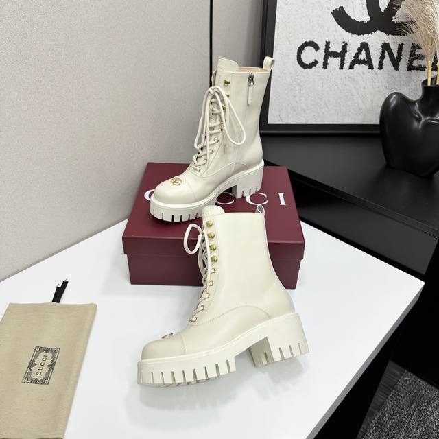 Highest Version DDD 2025 Gucci Fall/Winter Newest Mid-Heel Grooved Platform Horsebit Ankle Chelsea Boots High-End Boutique Item DDD This ankle boot skillfully blends fashionable elements from boot and soft-top shoe designs, featuring a lightweight foam rubber grooved sole. The iconic pattern continues to shine in Gucci's new collection, while the classic horsebit accessory showcases the brand's equestrian heritage. This design enhances the overall appeal, injecting a refined and sophisticated feel into everyday shoes. Material: Imported calfskin with embossed detailing. Insole: Water-bleached cowhide. Outsole: 1:1 molded rubber foam, high-tenacity, 4.5cm thick sole. Absolutely not heavy or stiff, and will not collapse. All materials and craftsmanship are consistent with the Y version. Sizes: 35-42 (standard size 404142, custom made). Heel height: 4.5cm, forefoot 2.5cm. Packaging: High-end boutique packaging. Price: [Price not specified]