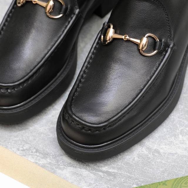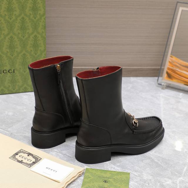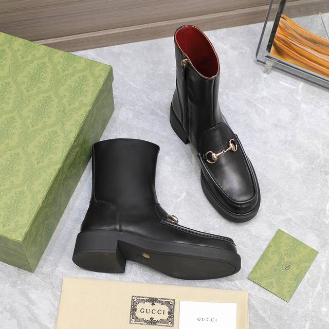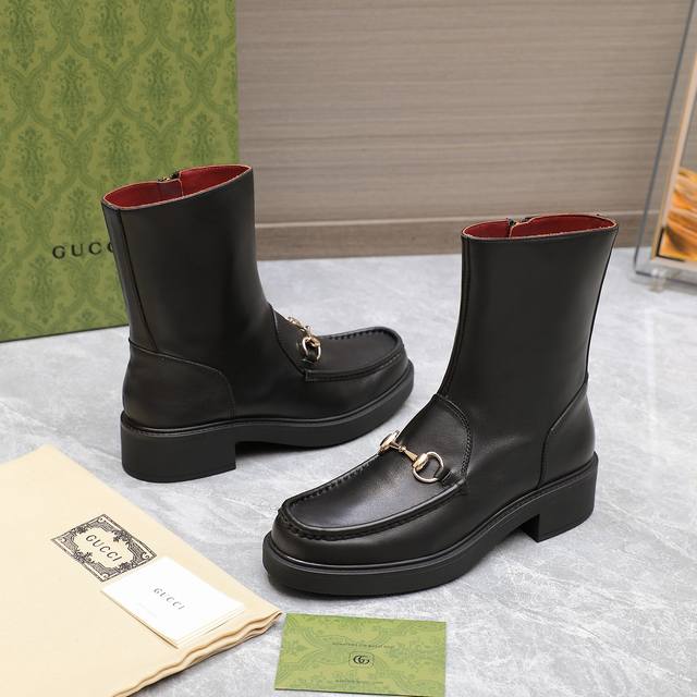 Highest Version DDD Autumn/Winter Newest Gucci Grooved Bee Sole Horsebit Platform Loafers Anchor Wine Red Lined 10-inch Ankle Boots DDD High-end boutique item at the level of a personal shopper DDD These loafers ingeniously blend the fashionable elements of boot and soft-top loafer design, paired with a lightweight foam rubber grooved bee sole. The iconic pattern continues to shine in Gucci's new collection, while the classic horsebit accessory highlights the brand's equestrian heritage. This design enhances the overall appeal, injecting a refined and sophisticated feel into everyday shoes. Material: Imported split-edge silk calfskin with light gold horsebit buckle. Insole: Anchor burgundy silk calfskin. Outsole: 1:1 mold-developed high-tenacity rubber foam "little bee" sole. Absolutely not heavy or stiff, and will never collapse. All materials and craftsmanship are consistent with the Y version. Sizes: 35-42 (standard size 404142, custom made). Heel height: 4.5cm, forefoot 2.5cm. Packaging: High-end boutique packaging. Factory price: [price missing]